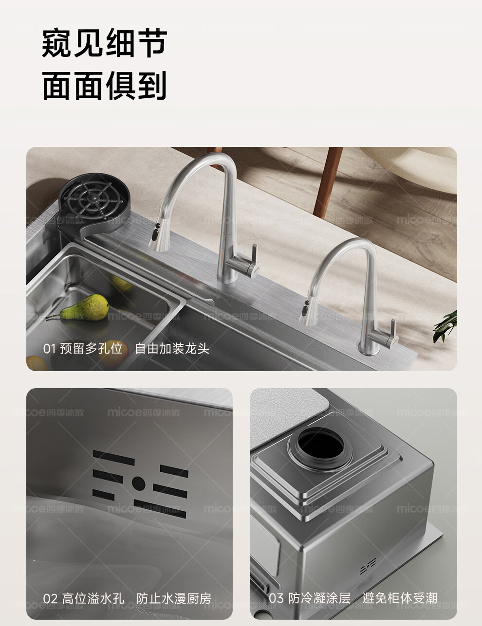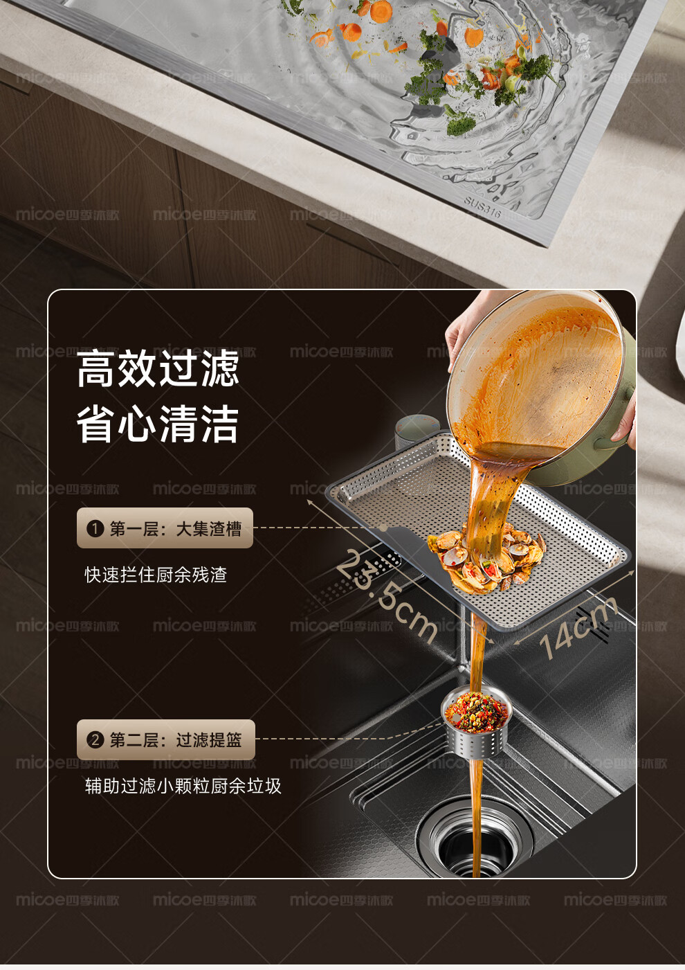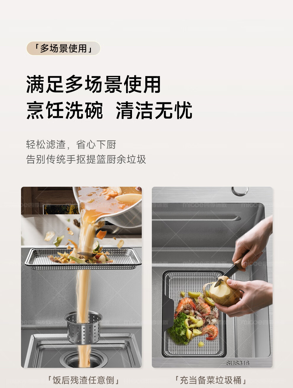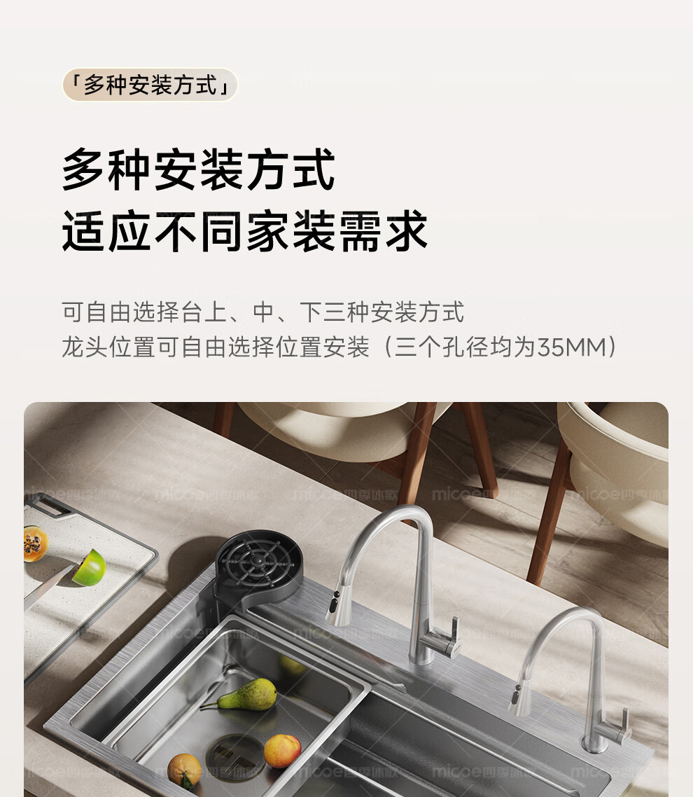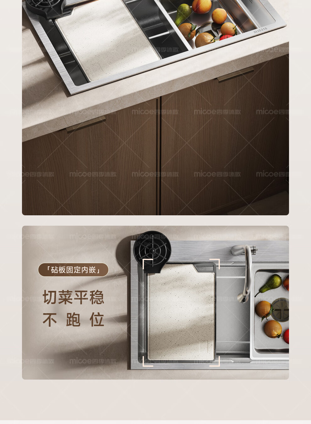 四季沐歌(MICOE)厨房手工水槽316L不锈钢洗菜盆洗碗槽大容量单槽 万家 【M-B120福禄盆L9】68*46/75*46 医用级316