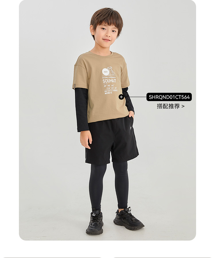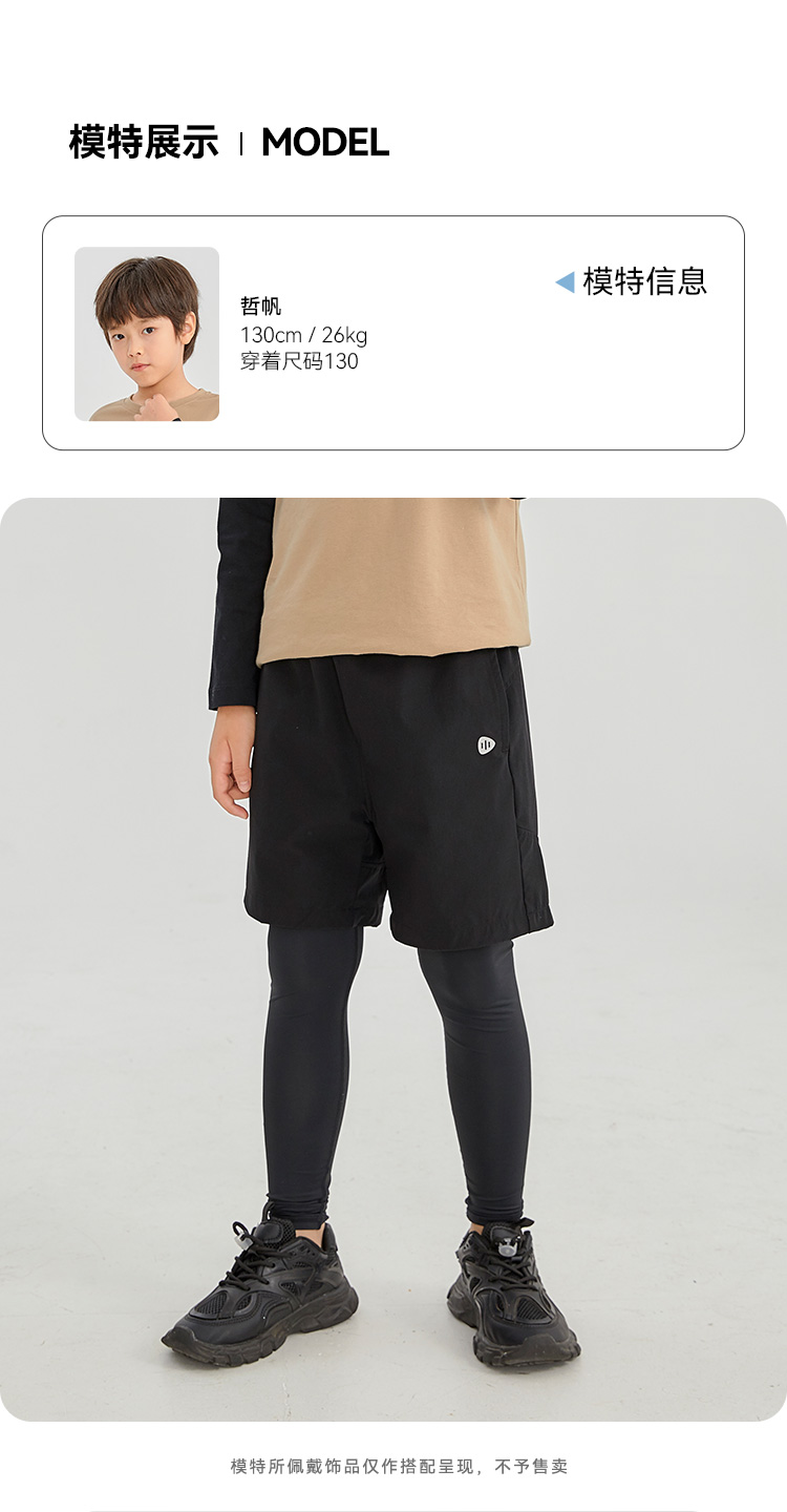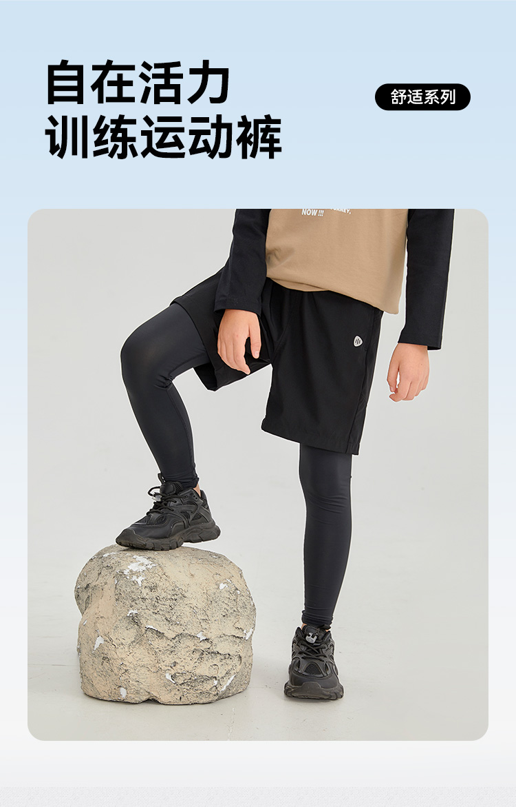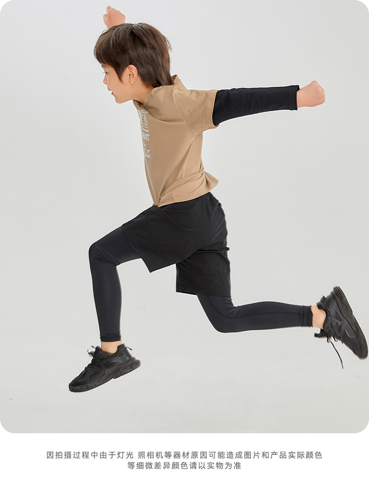 水孩儿童装男童训练运动裤舒适假两件弹力裤时尚简约打底裤子
