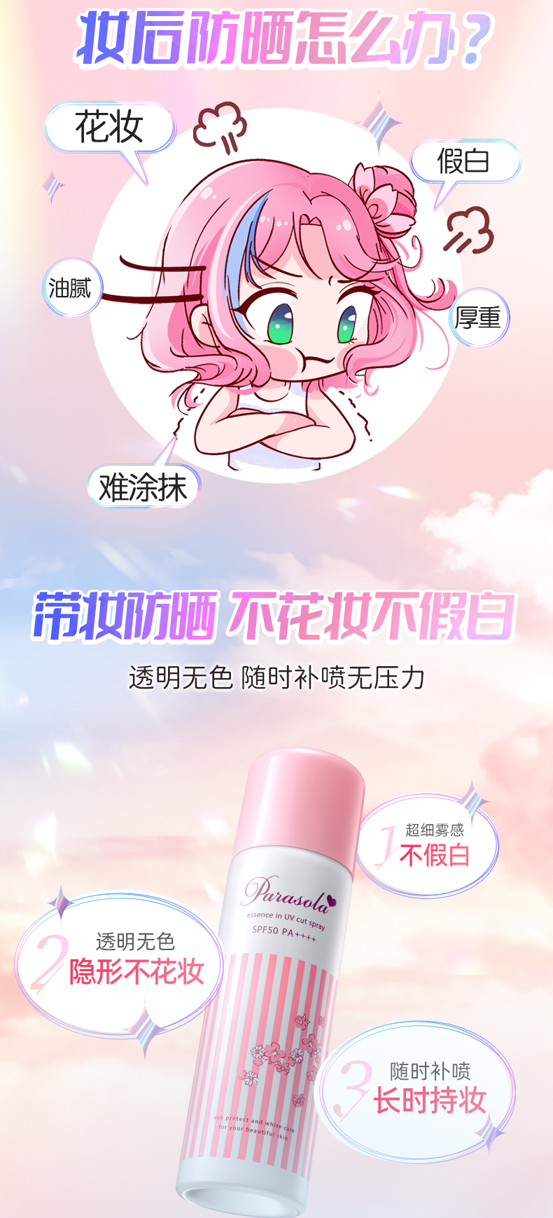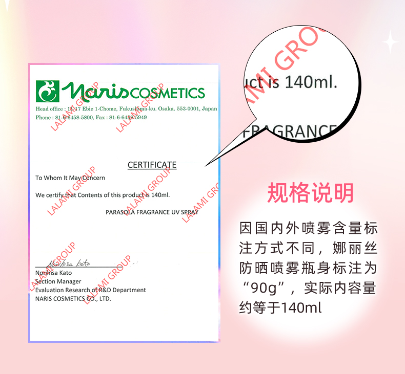 Naris娜丽丝小阳伞防晒喷雾90g/瓶SPF50,PA++++【特】