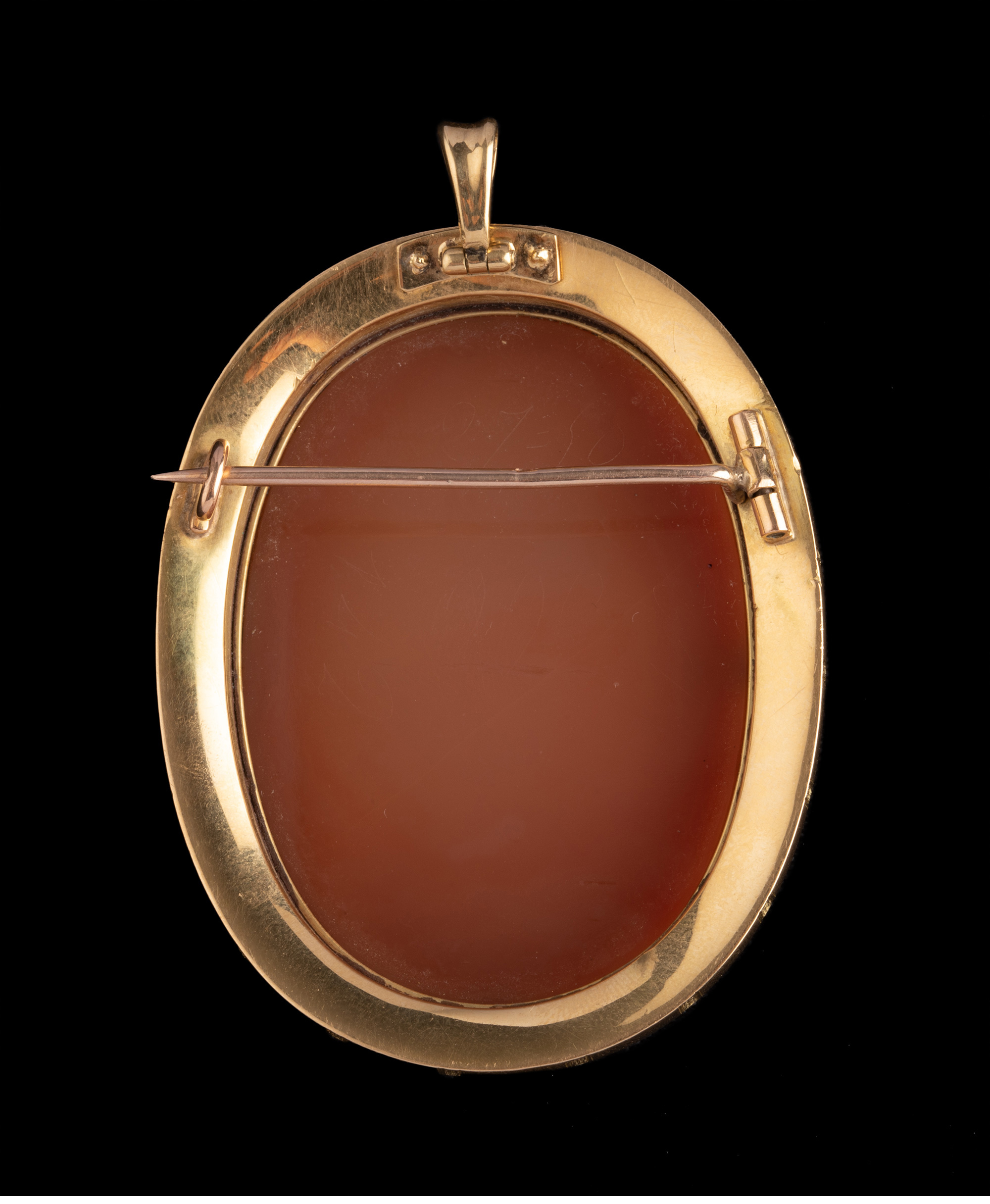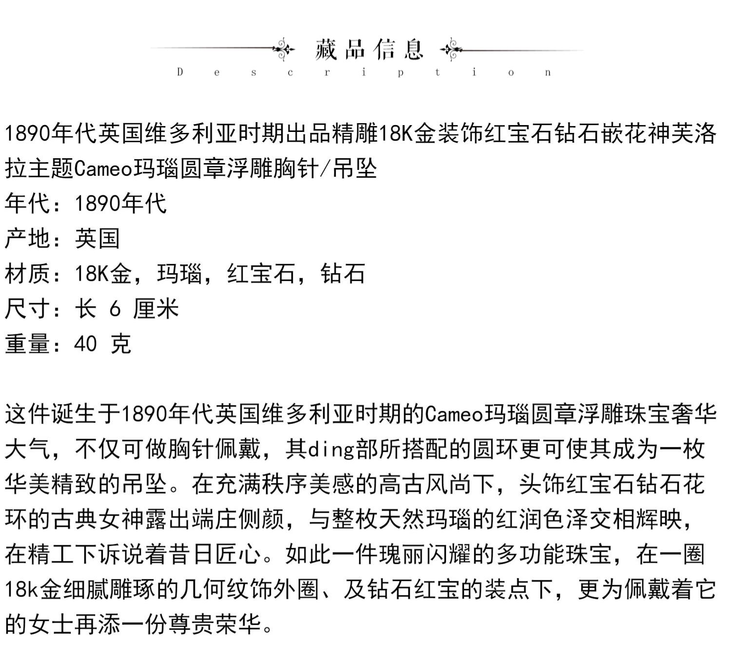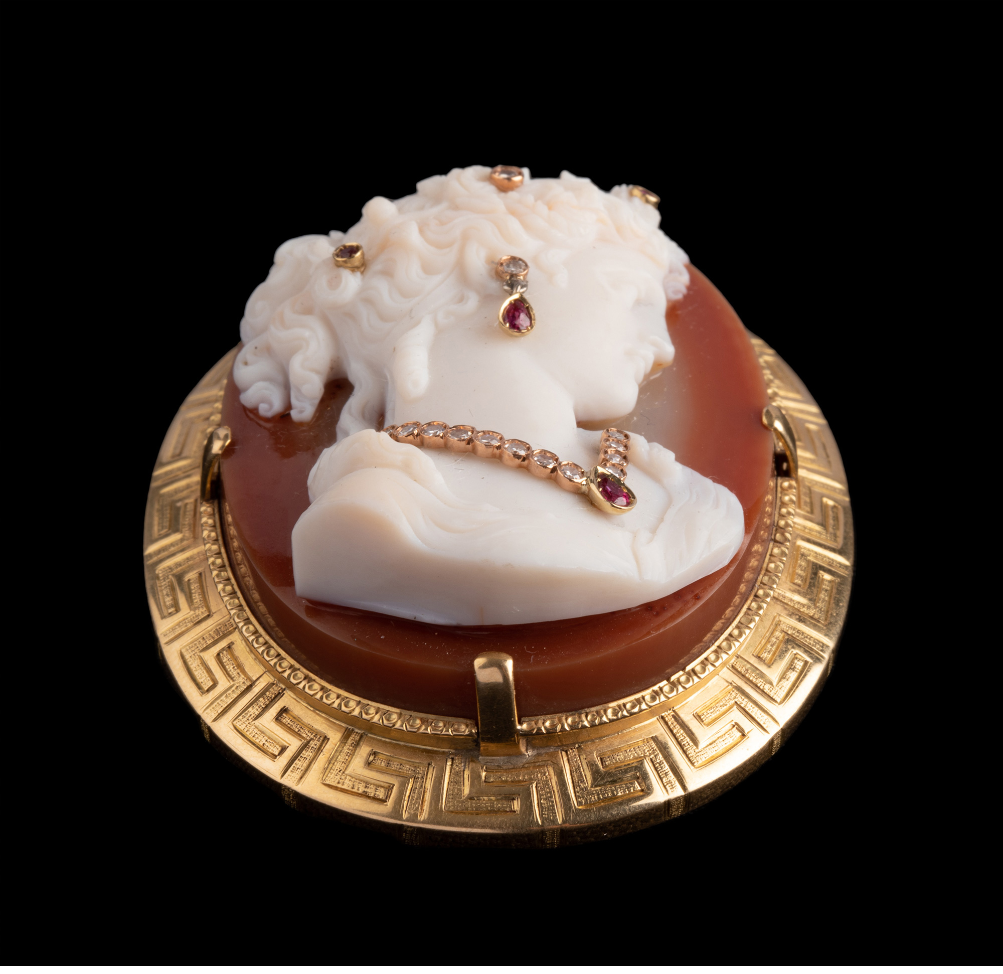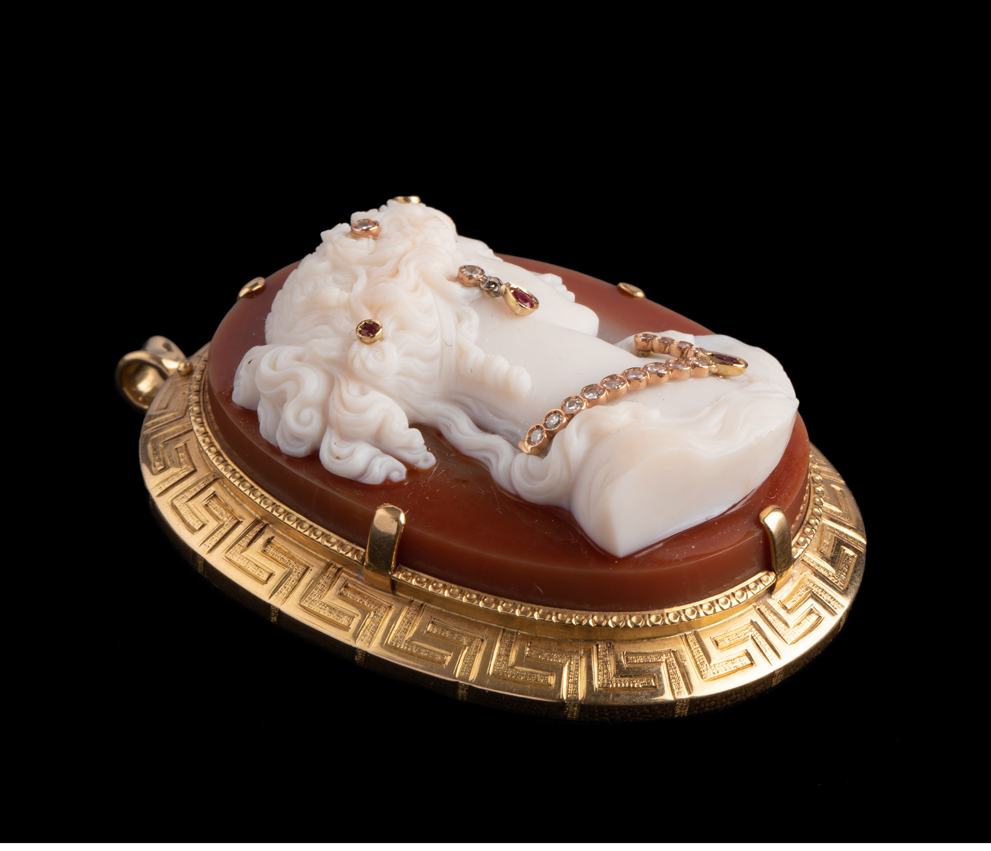 独角鹿西洋古董18K金红宝石钻石嵌Cameo卡梅奥玛瑙浮雕胸针吊坠