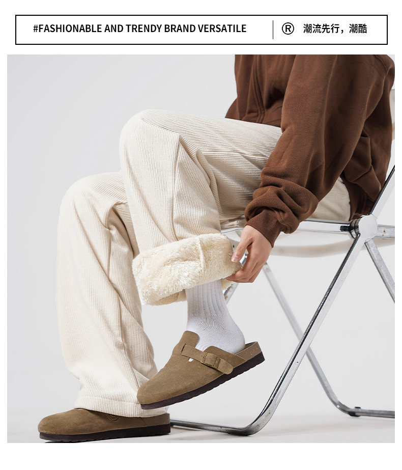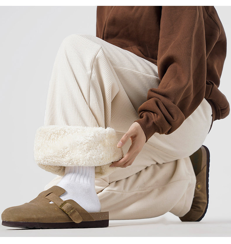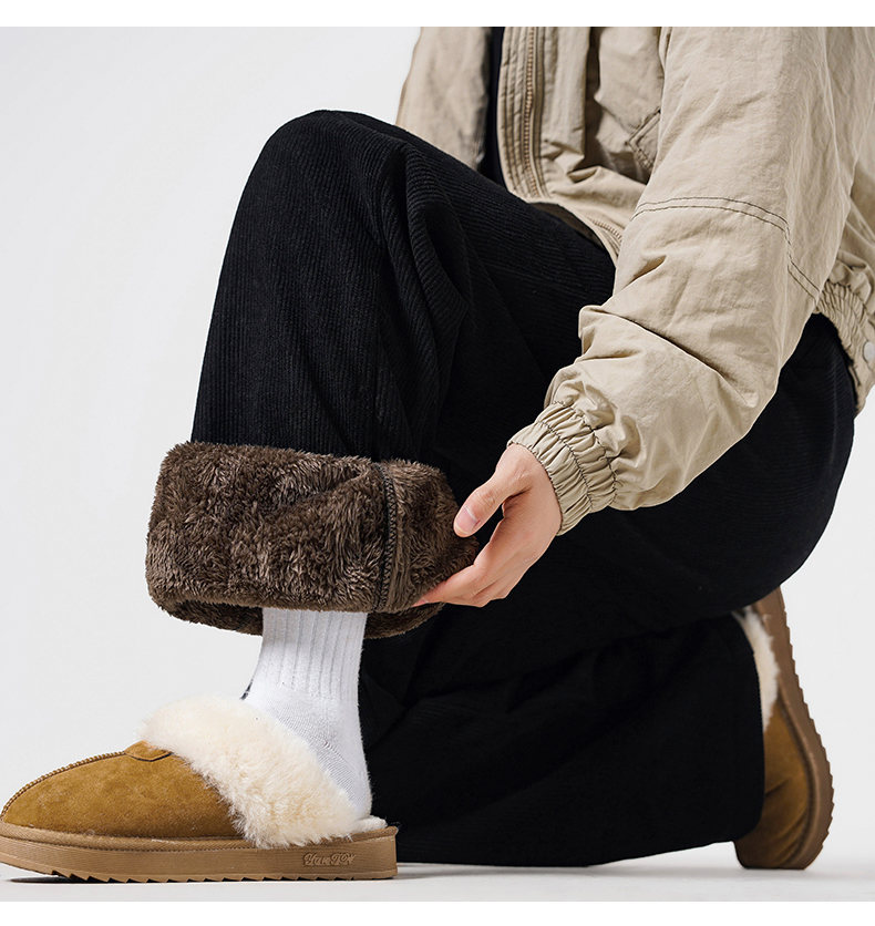 【YW】无忧购休闲裤男秋冬宽松直筒裤加绒保暖羊羔绒灯芯绒长裤2282(截单后3-5天发货)