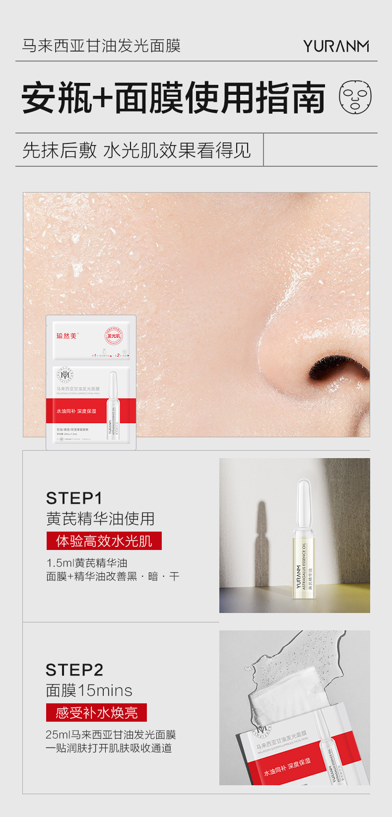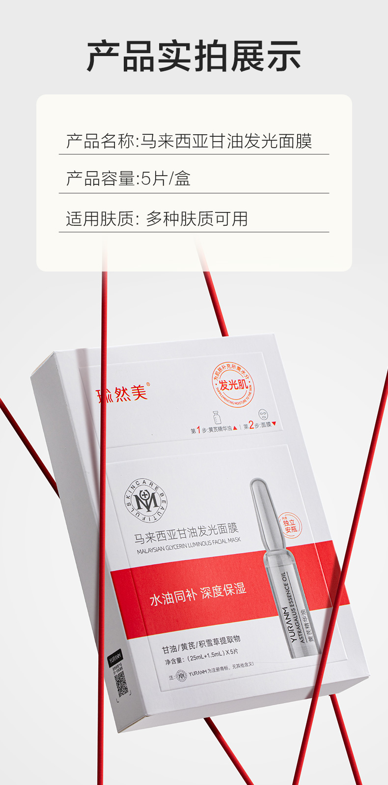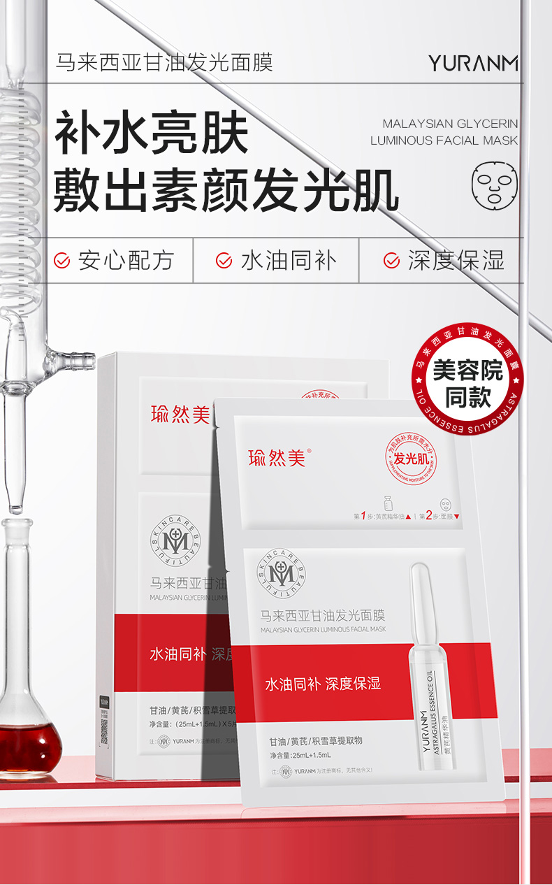 【微信会员专属】瑜然美马来西亚甘油发光面膜补水保湿舒缓女官方旗舰店