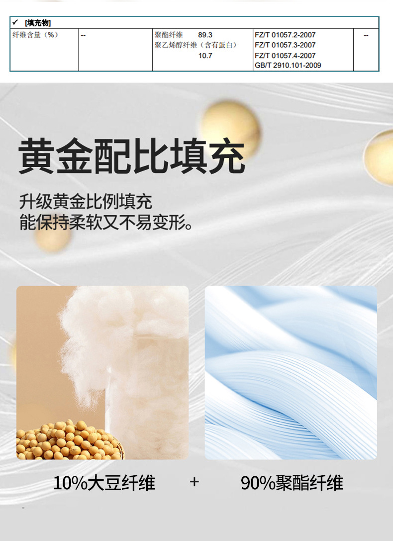 材质:面料:锦纶纤维 填充:10%大豆纤维 90%聚酯纤维