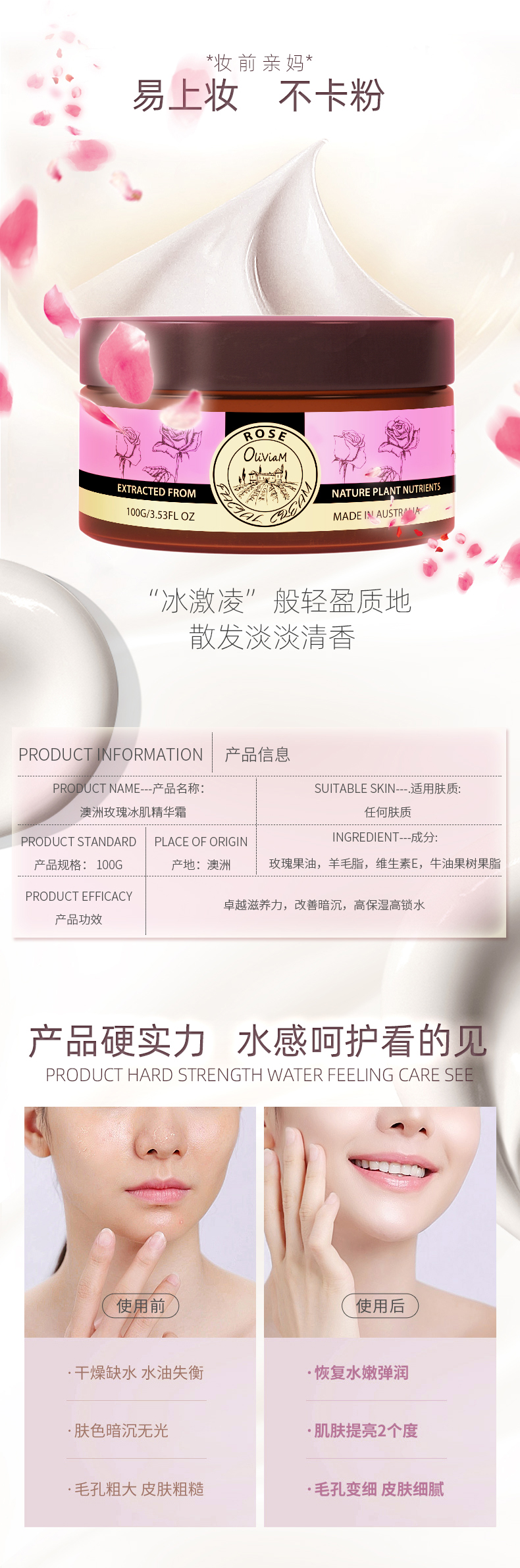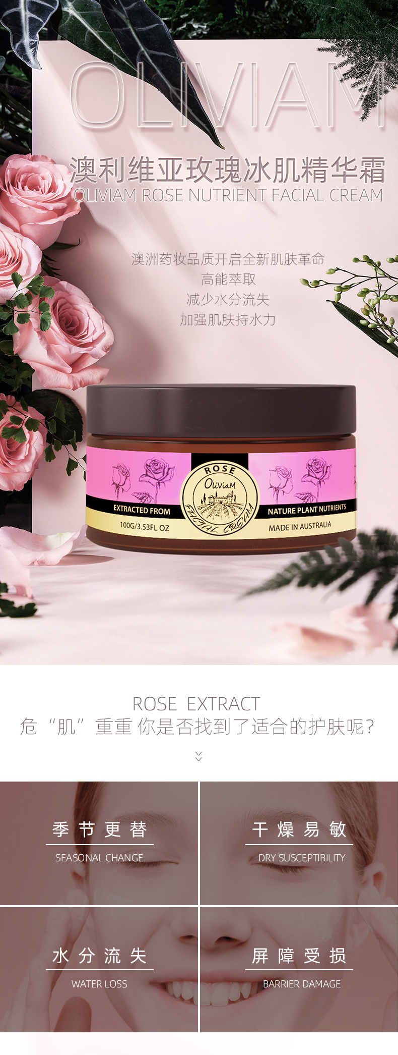 【中欧班列精选】澳洲面霜 原装进口Oliviam澳莉维亚玫瑰冰肌精华面霜/ 肌活舒缓精华面霜100g ALWY