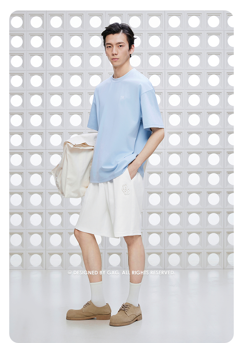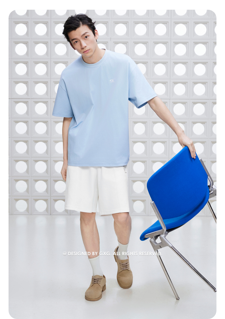 GXG男装 265g重磅字母绣花简约时尚圆领短袖T恤男士 夏季新品