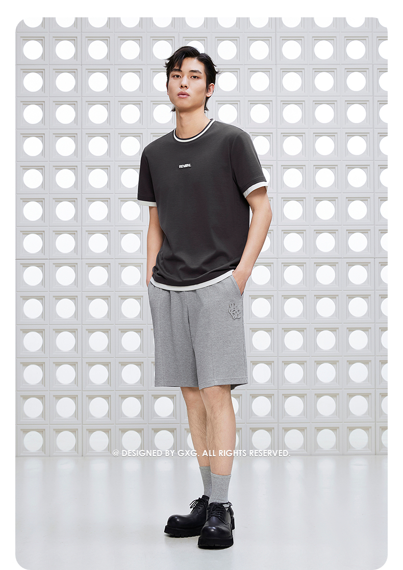 GXG男装 肌理感休闲短裤织带运动短裤 24年夏G24X222010