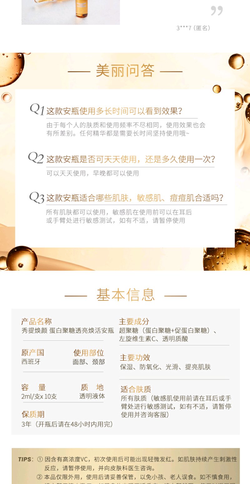 (超值)西班牙ISDIN怡思丁秀提焕颜蛋白聚糖透亮焕活安瓶 2ml*10支装