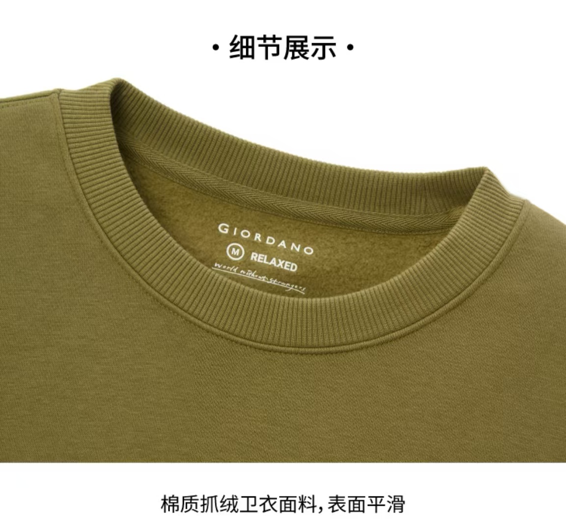 佐丹奴男装25年新款基础百搭圆领舒适长袖抓绒卫衣01025609