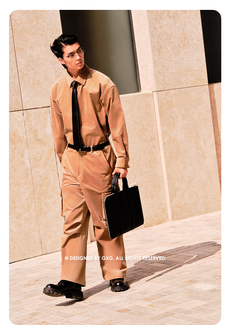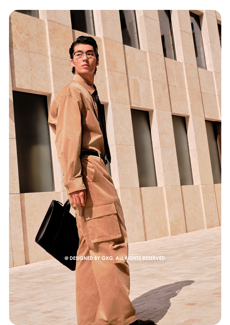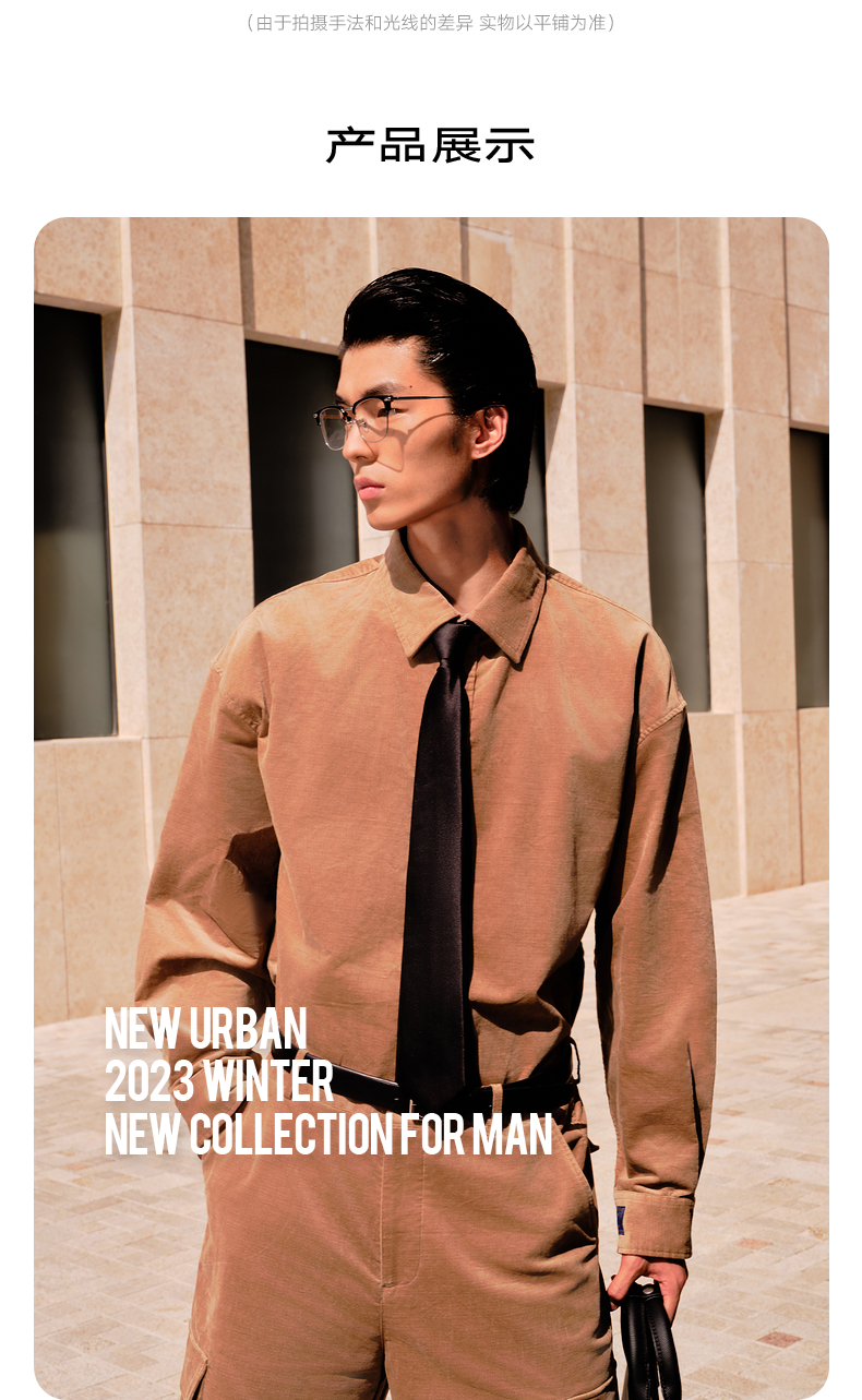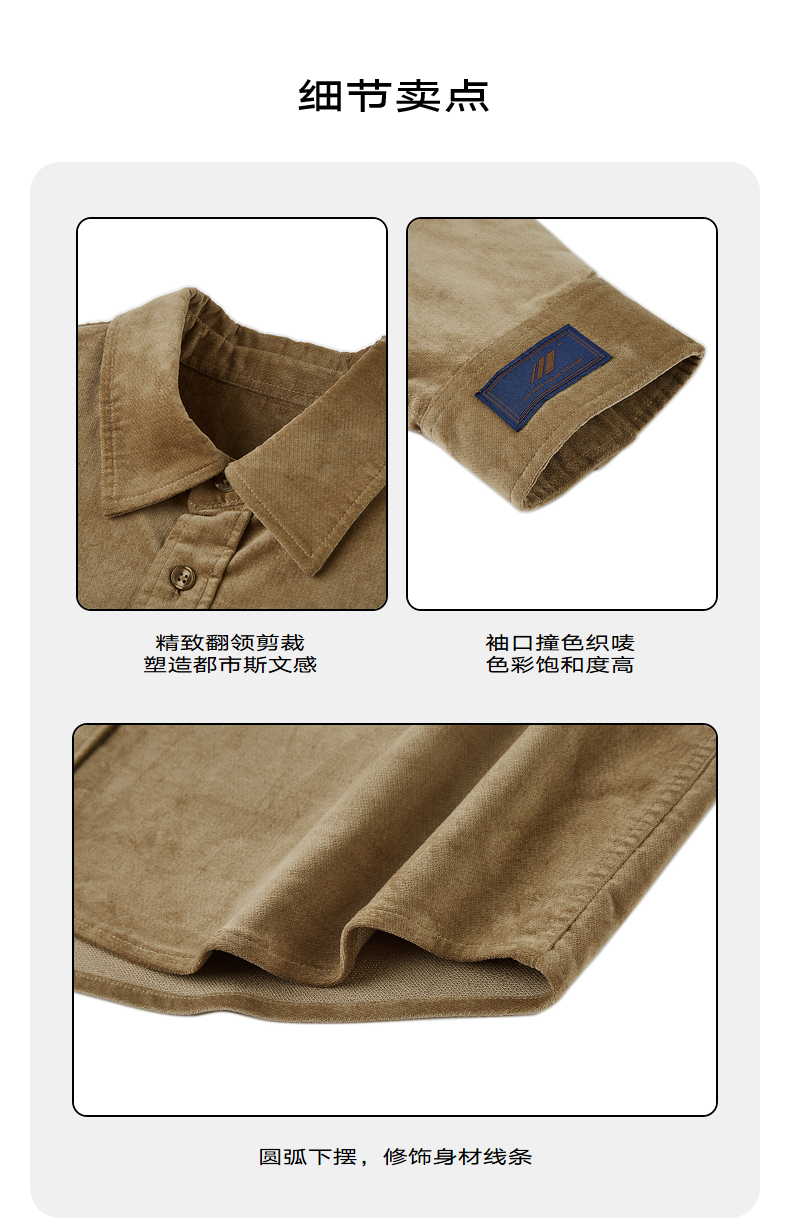 GXG男装 卡其色灯芯绒细腻舒适休闲翻领长袖衬衫 冬季热卖衬衫