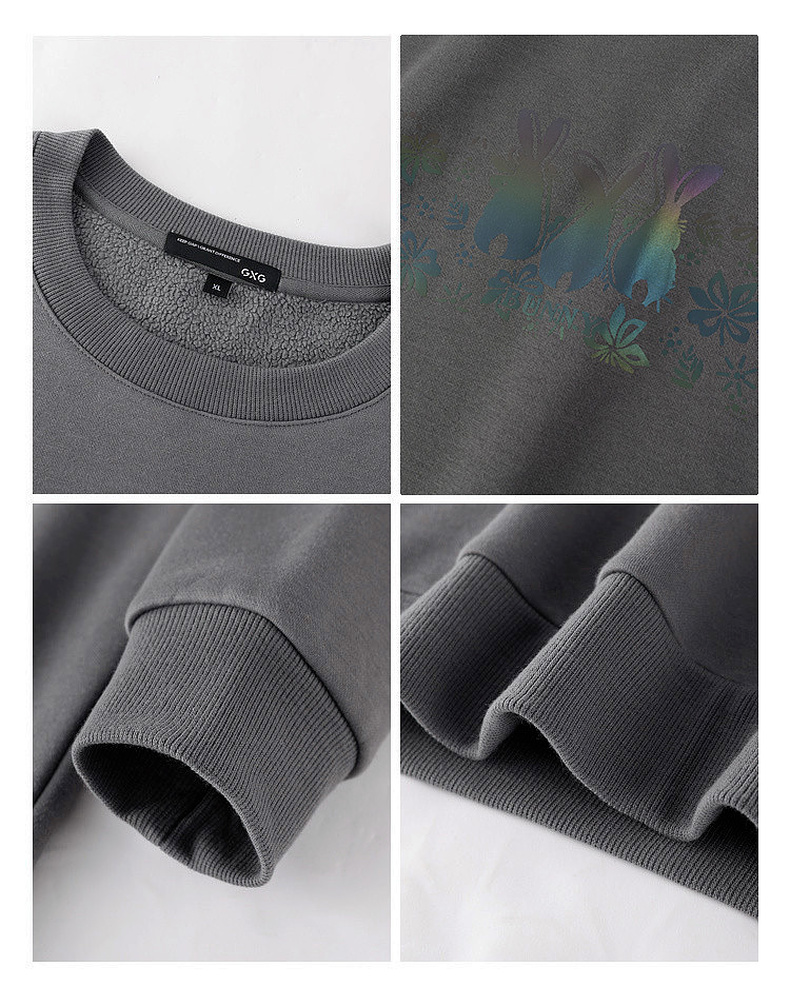 GXG男装【花园兔子】冬季时尚卡通印花男士圆领加绒卫衣K&C