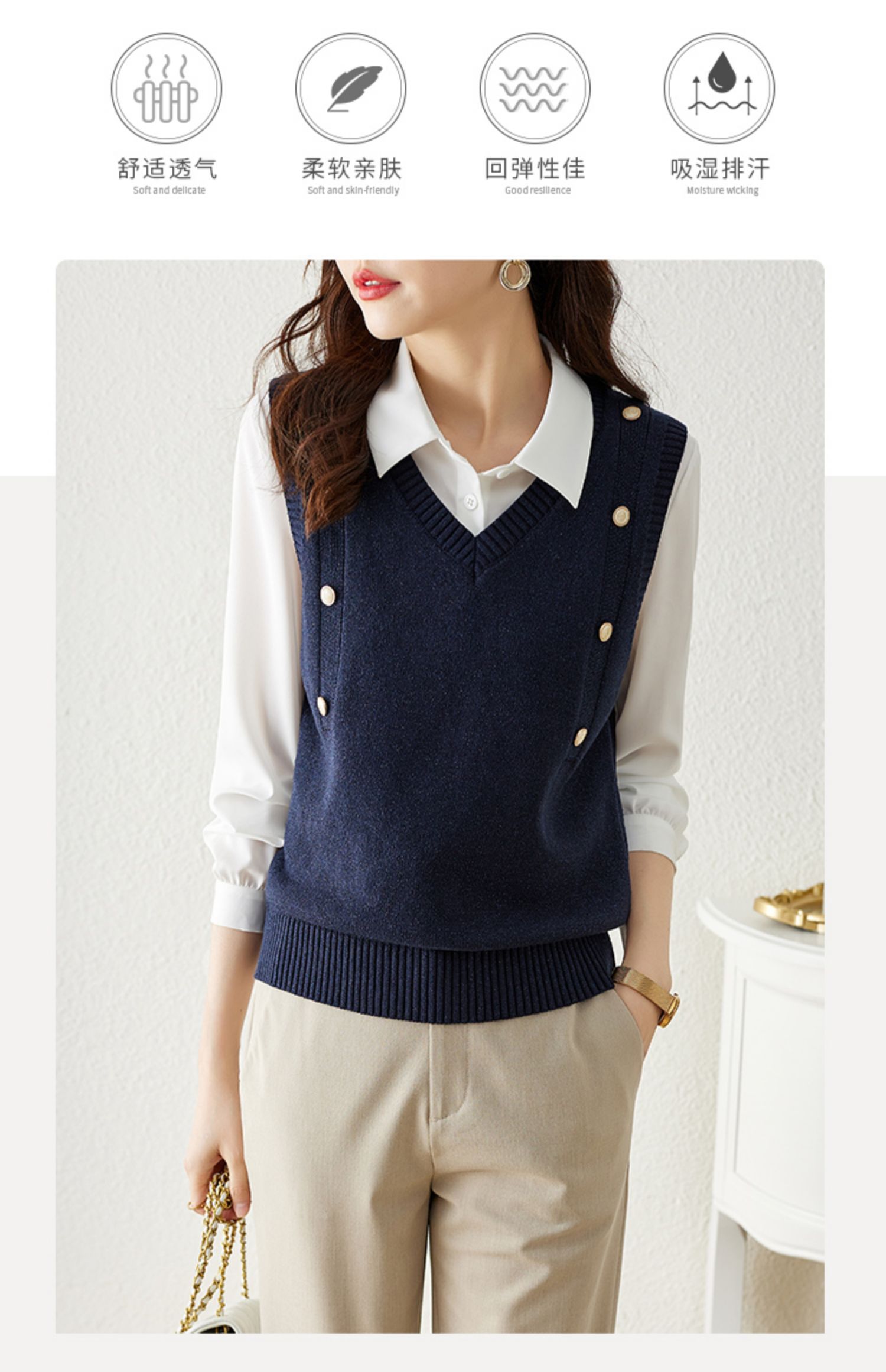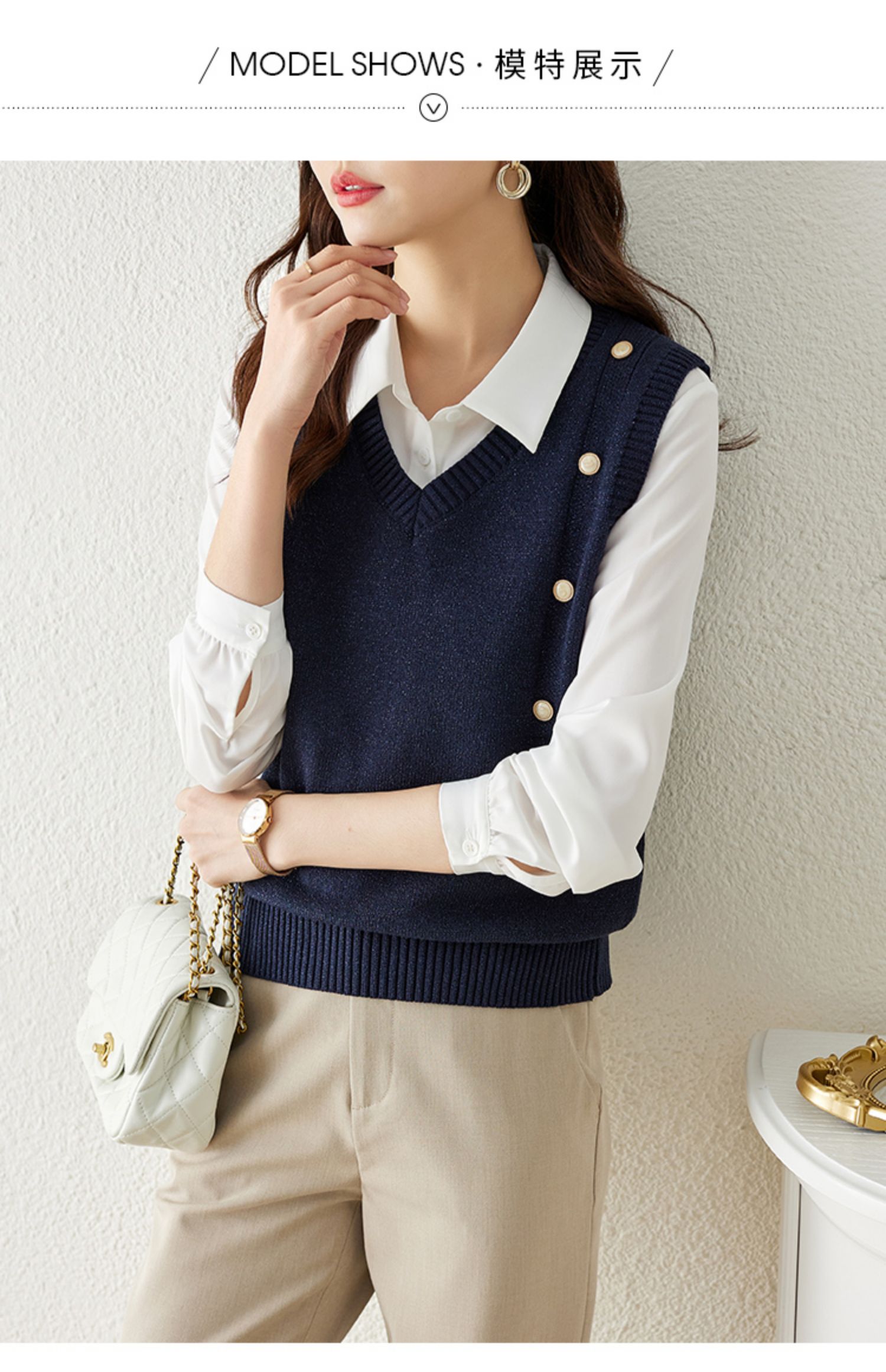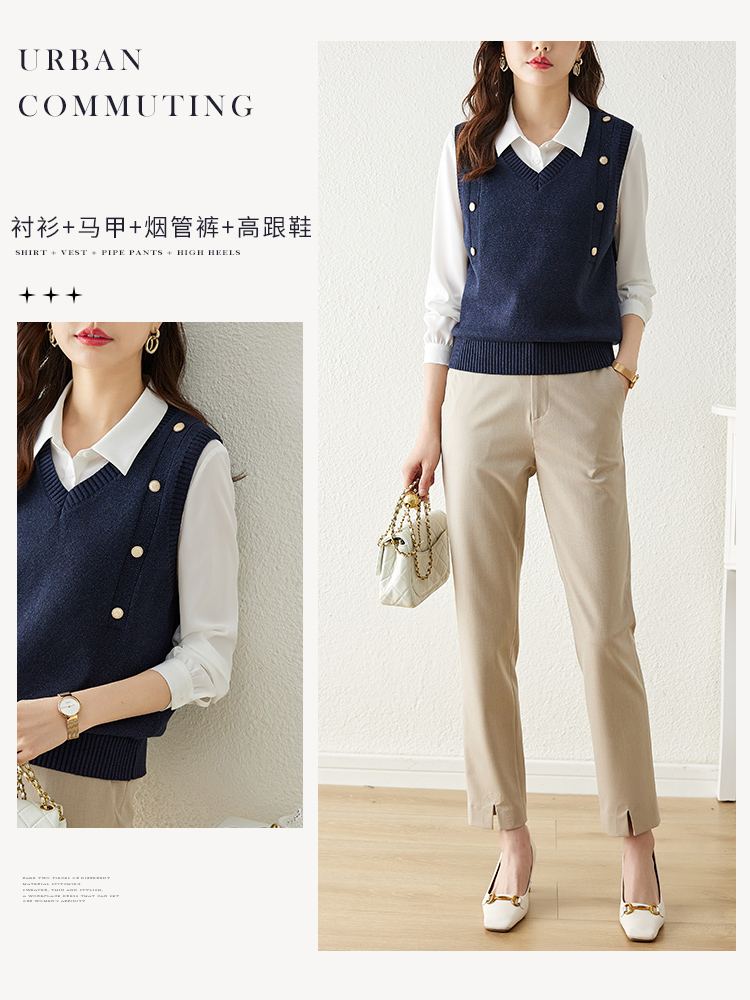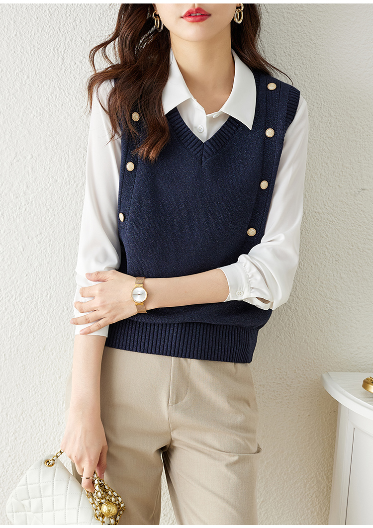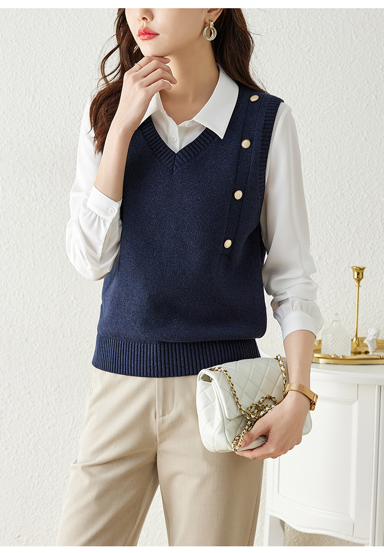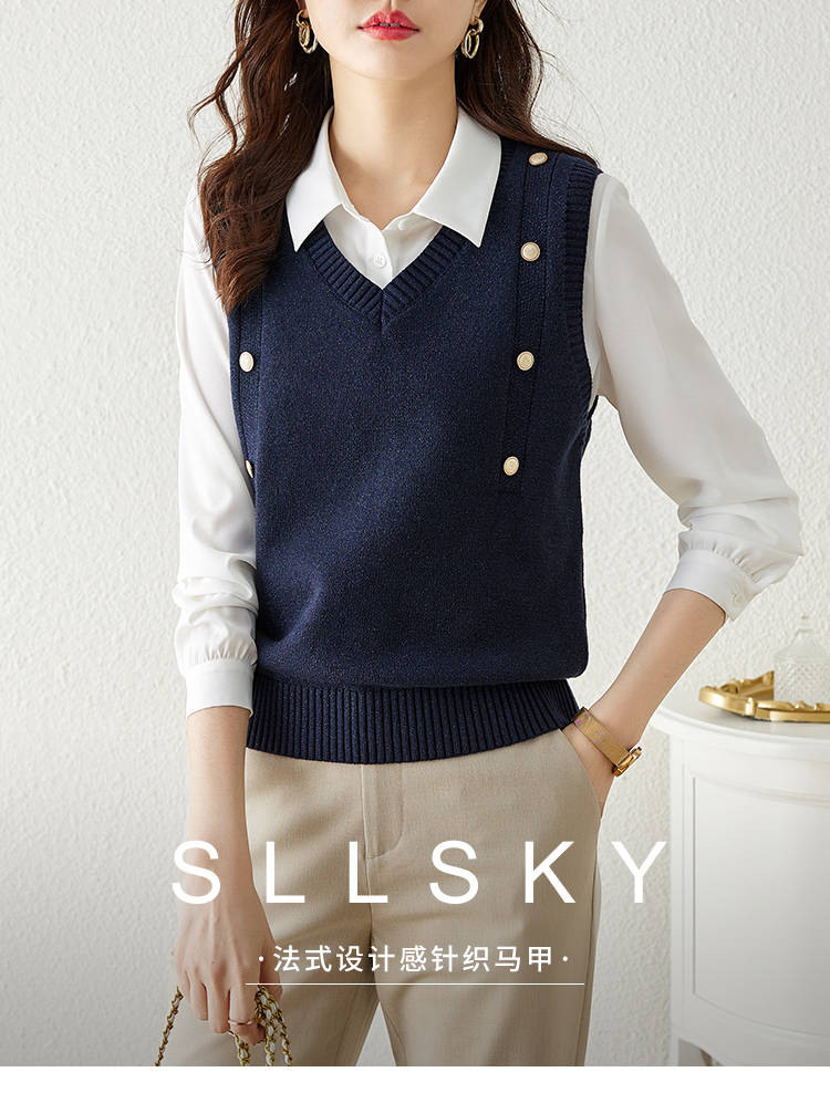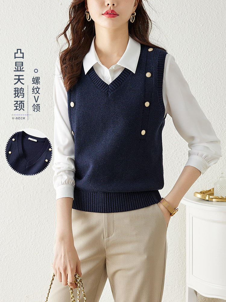 【129选3件,不退换】 熙世界法式针织马甲女2025春秋新款外搭v领坎肩毛衣背心设计感