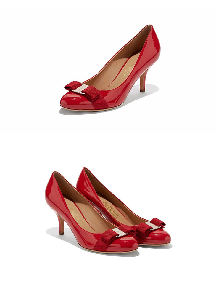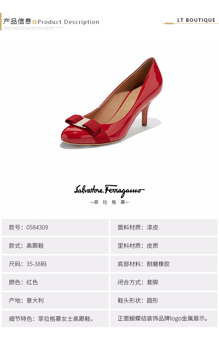 菲拉格慕 FERRAGAMO 女鞋漆皮蝴蝶结高跟鞋 584309 红色