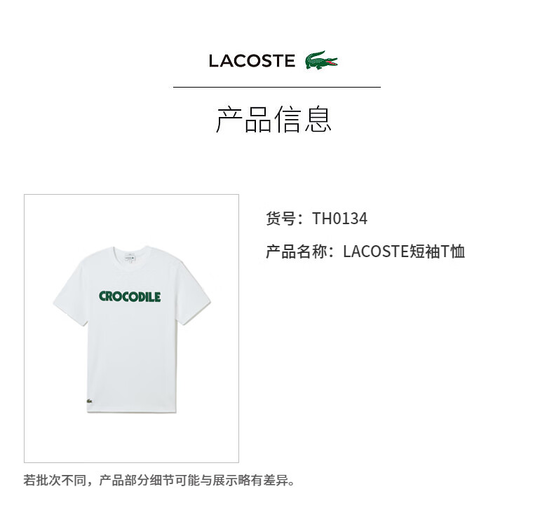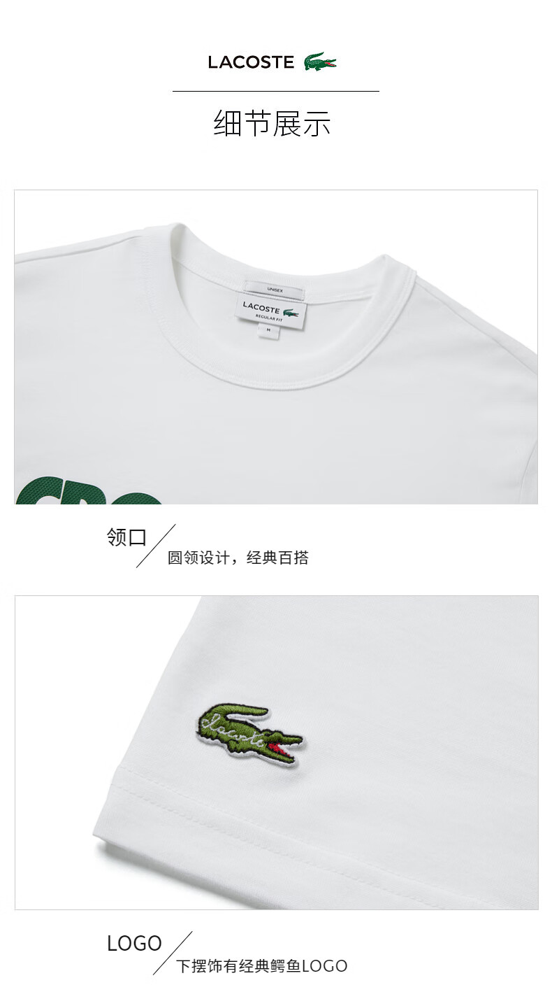 Lacoste法国鳄鱼男女同款新款时尚百搭短袖T恤TH0134-98