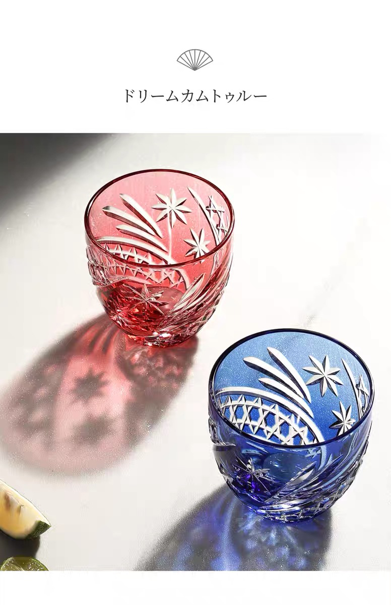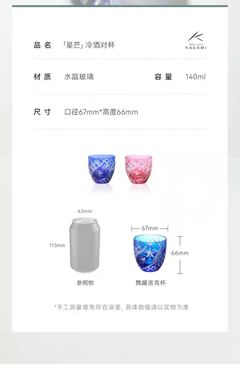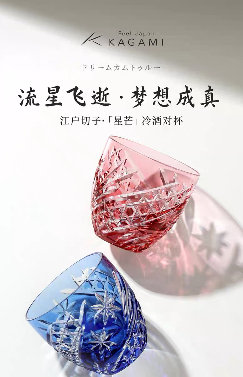 KAGAMI江户切子水晶玻璃白酒杯星芒冷酒对杯酒杯子