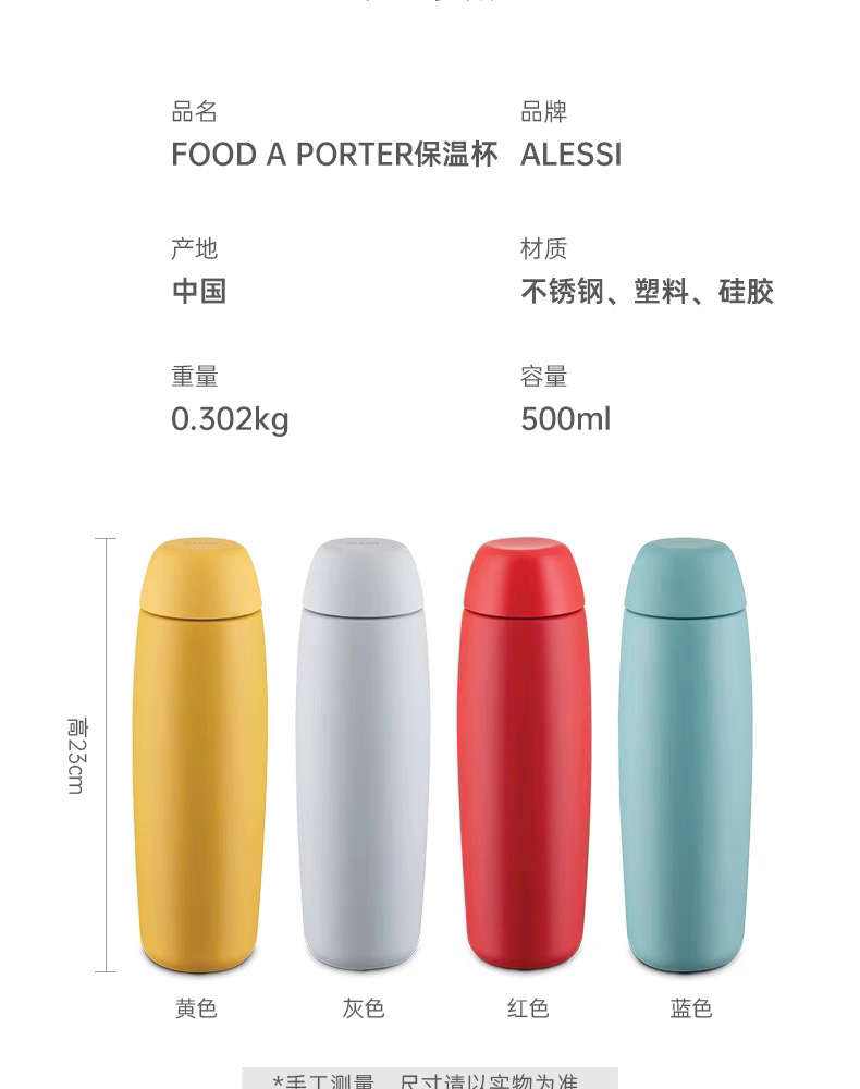 ALESSI/彩色保温杯随行杯轻奢泡茶过滤不锈钢办公室旅行