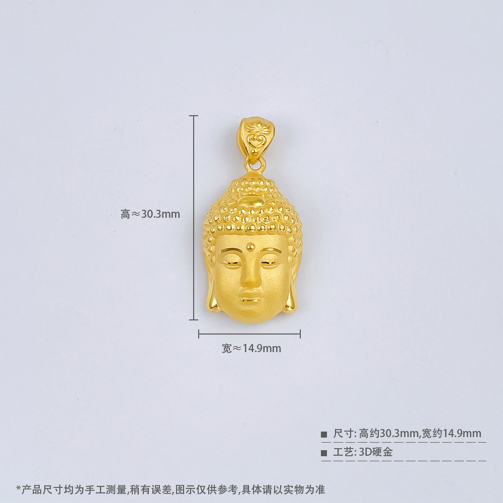 【限时克减150元】足金 【精品】3D硬金空心佛头吊坠(厚约8.7mm)(AR3DDZ00009-2)(特殊产品下单后不退款不退货不换货不补差价)