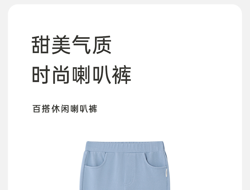 英氏儿童牛仔裤夏季休闲长裤新款女童微喇叭裤子YRKZJ2R031A