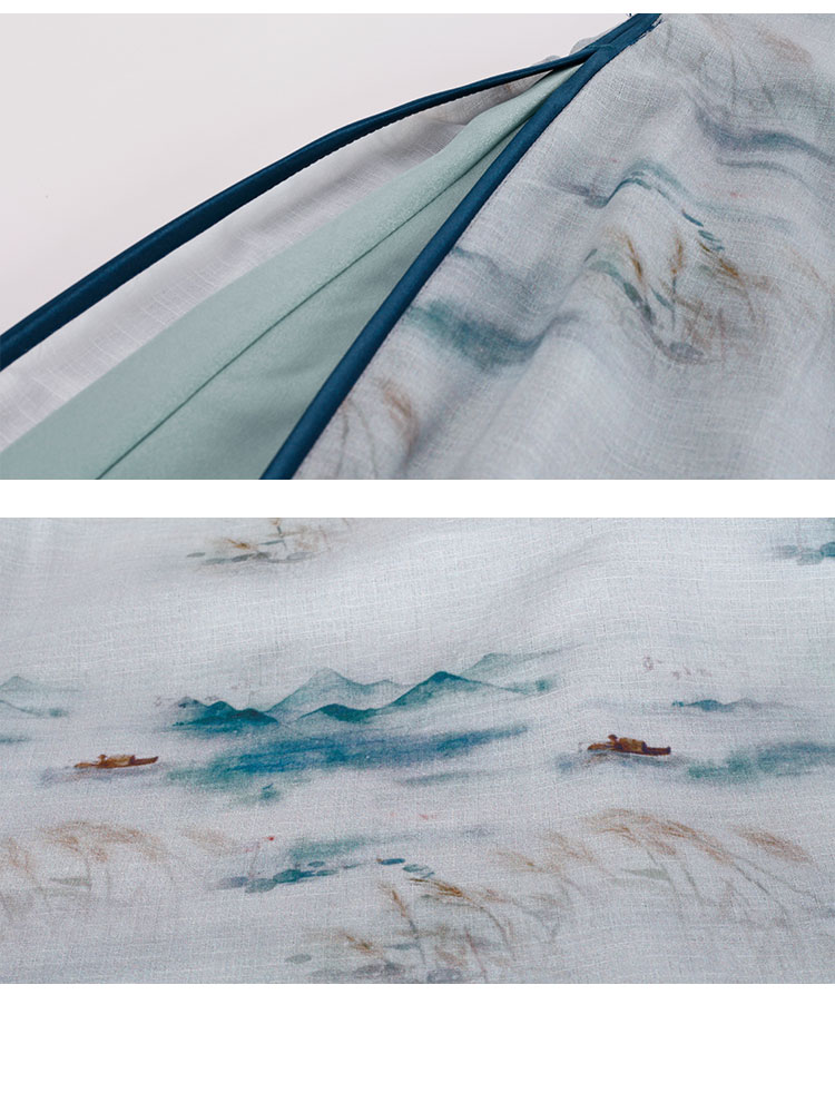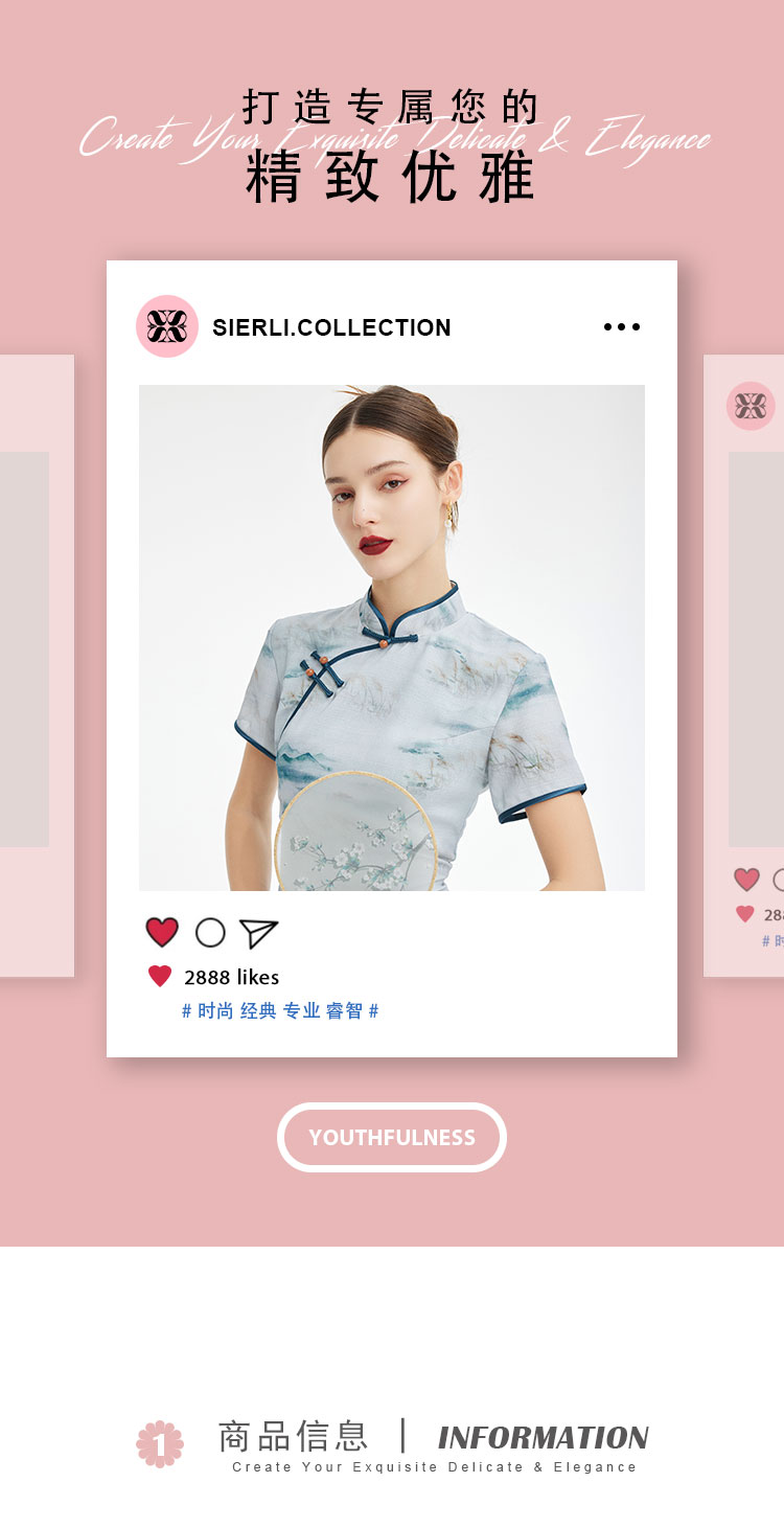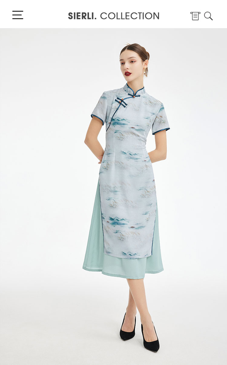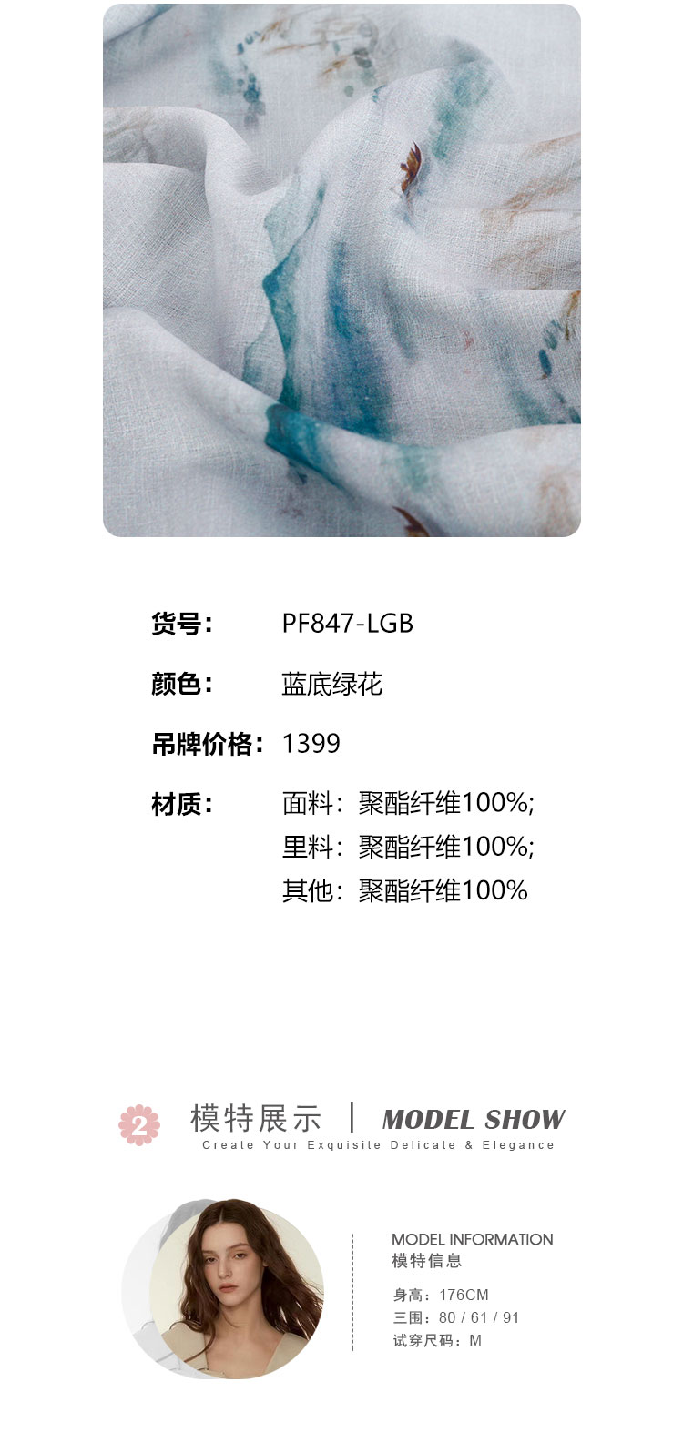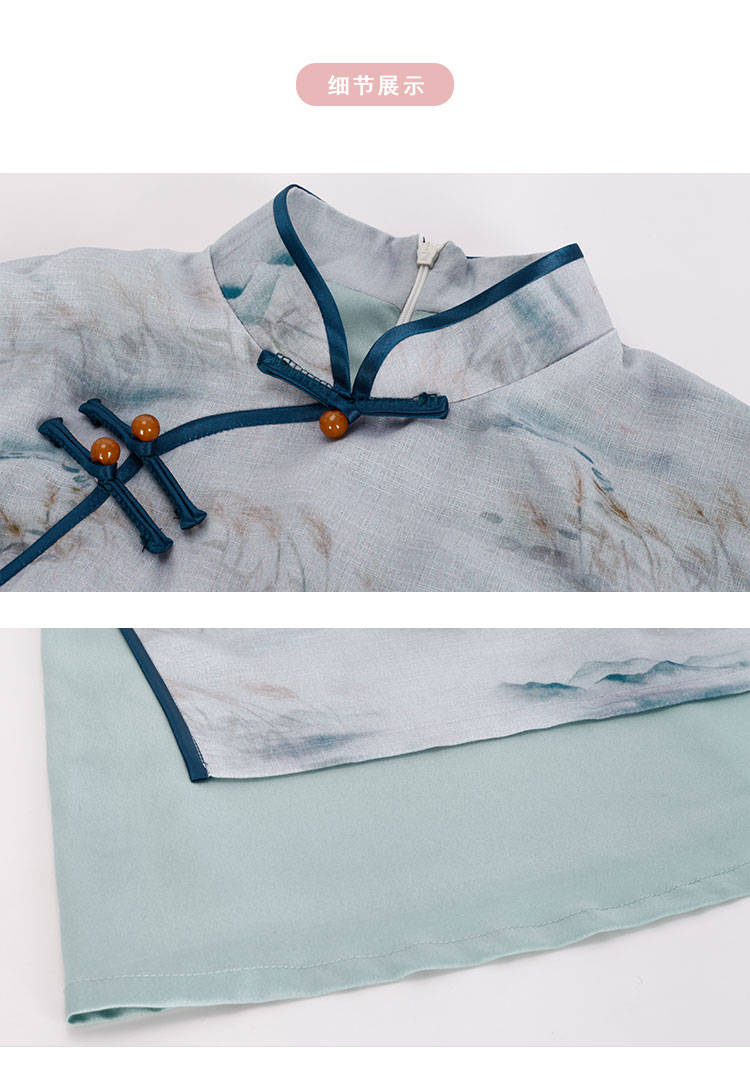 PF847斯尔丽2024新款新国风改良版奥黛旗袍式水墨画气质高雅连衣裙