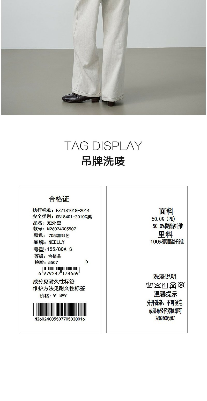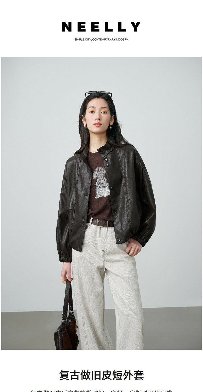 NEELLY纳俪商场同款春季新款复古做旧短外套女休闲帅气随性上衣N26024C05507
