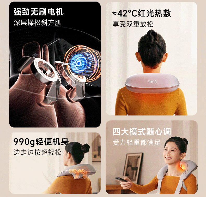 SKG颈椎按摩器肩颈椎按摩披肩按摩垫充电便携斜方肌揉捏车载腰背腿部母亲节实用送妈妈男女友礼物礼品 【H3-2豪华款】肩颈揉捏按摩