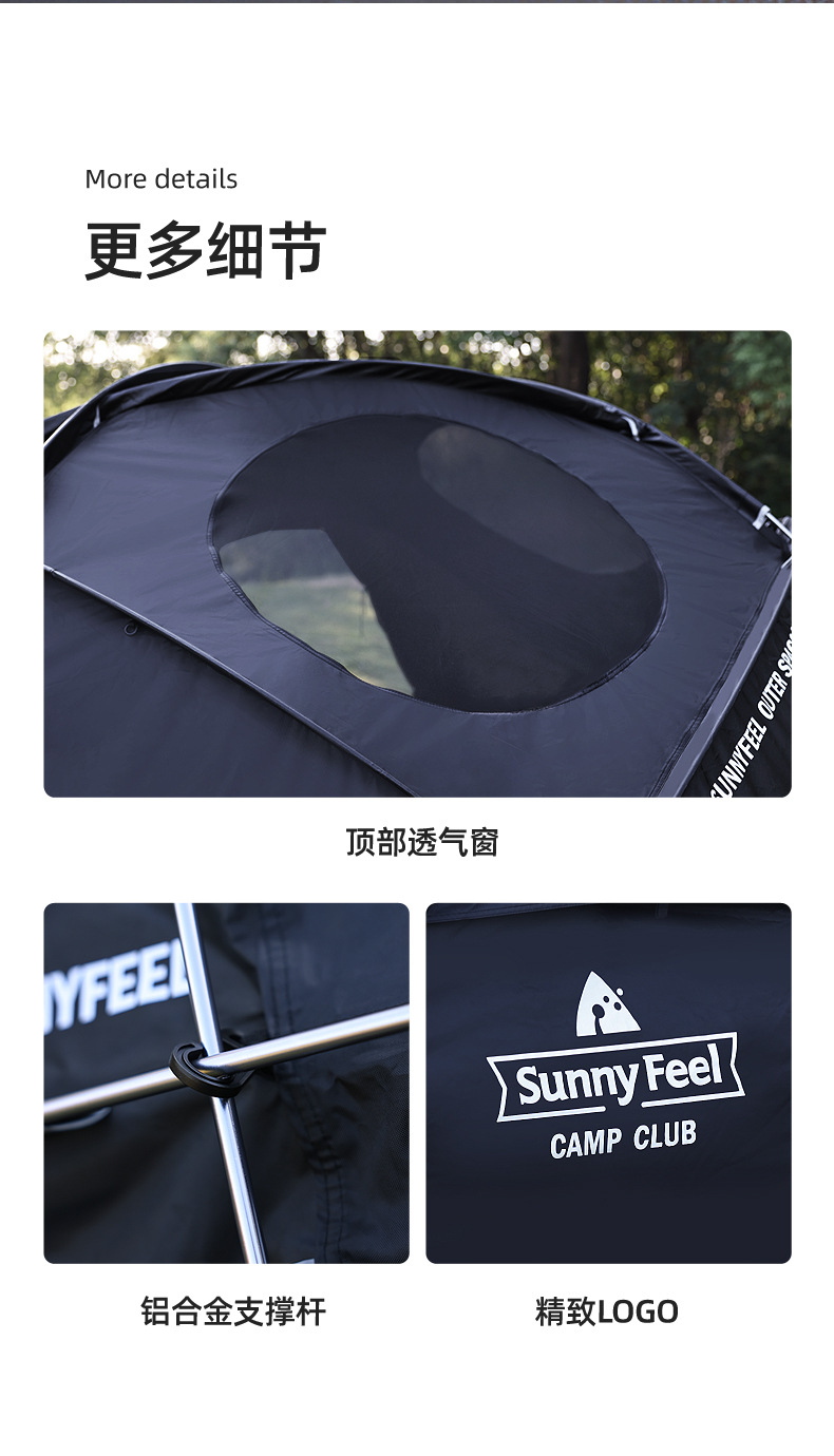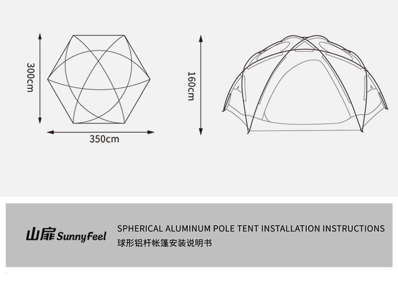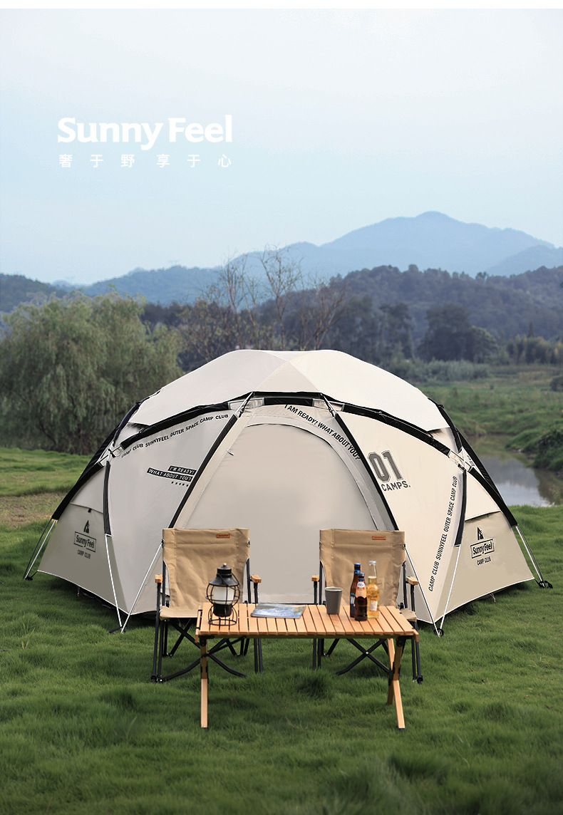 SunnyFeel山扉户外露营黑化半球形帐篷_铝杆野营圆形防雨防晒帐篷