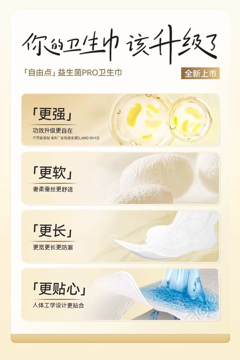 自由点益生菌夜用卫生巾绵柔超薄 290mm 9片/包