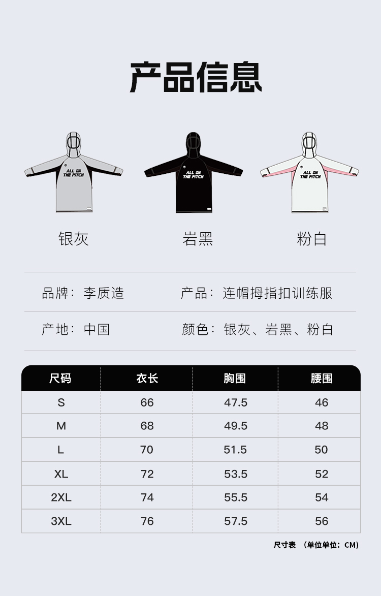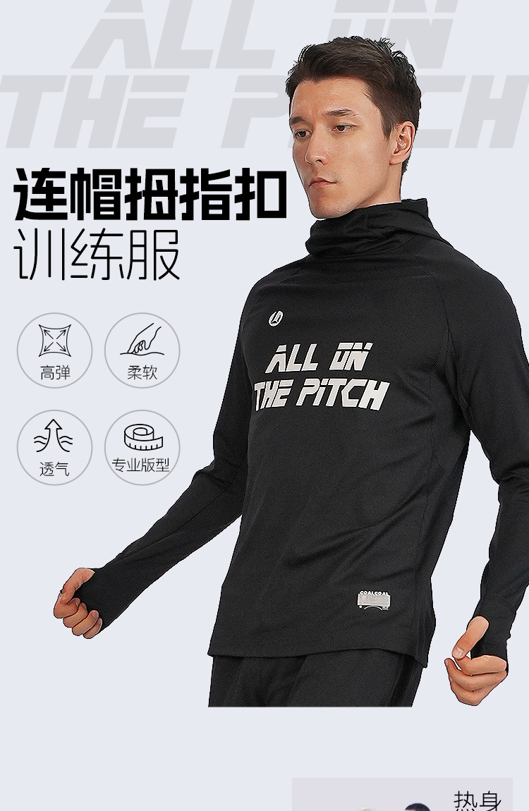 小李子李质造高弹透气亲肤吸汗连帽综合运动训练拇指扣长袖训练服