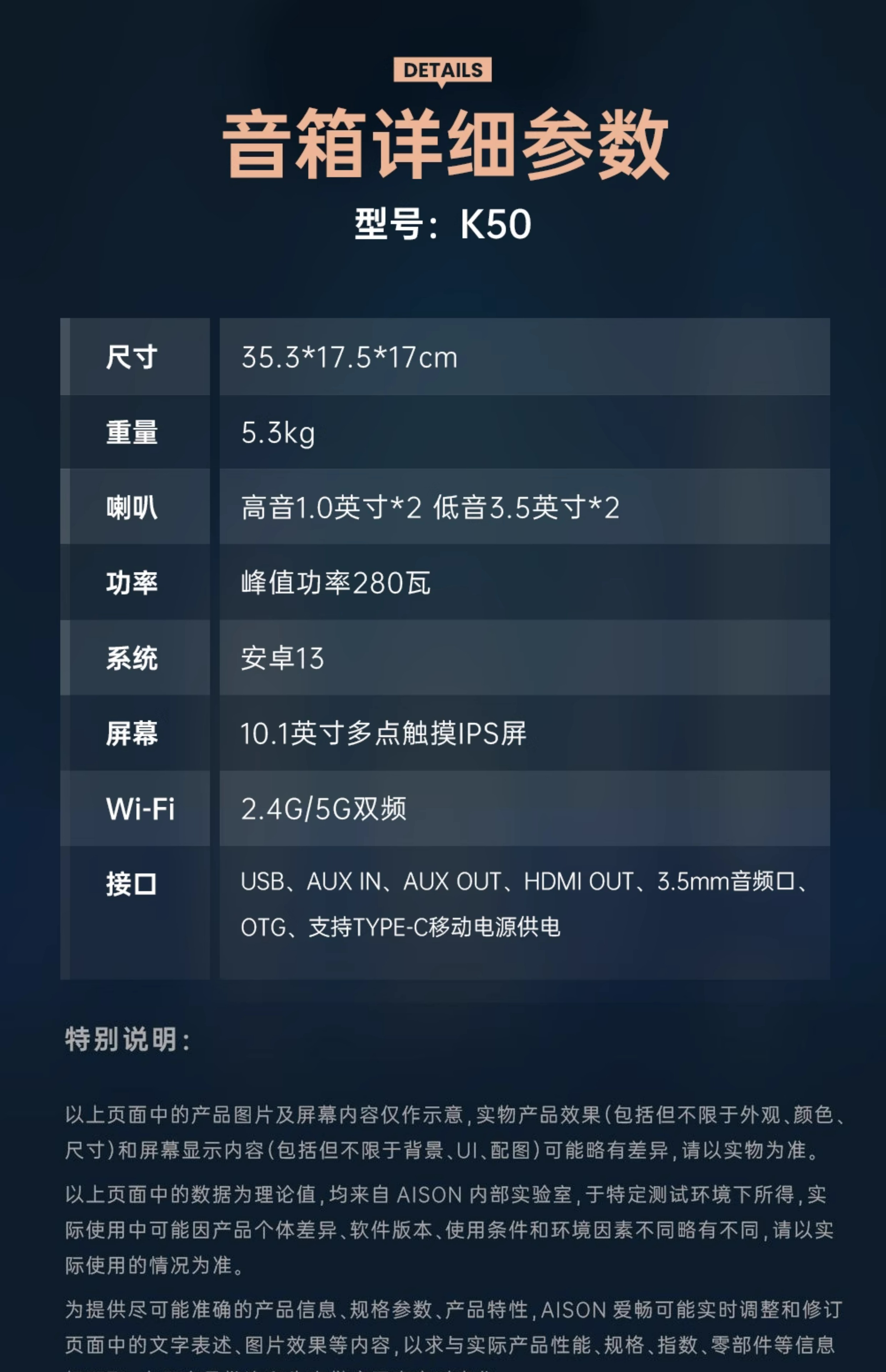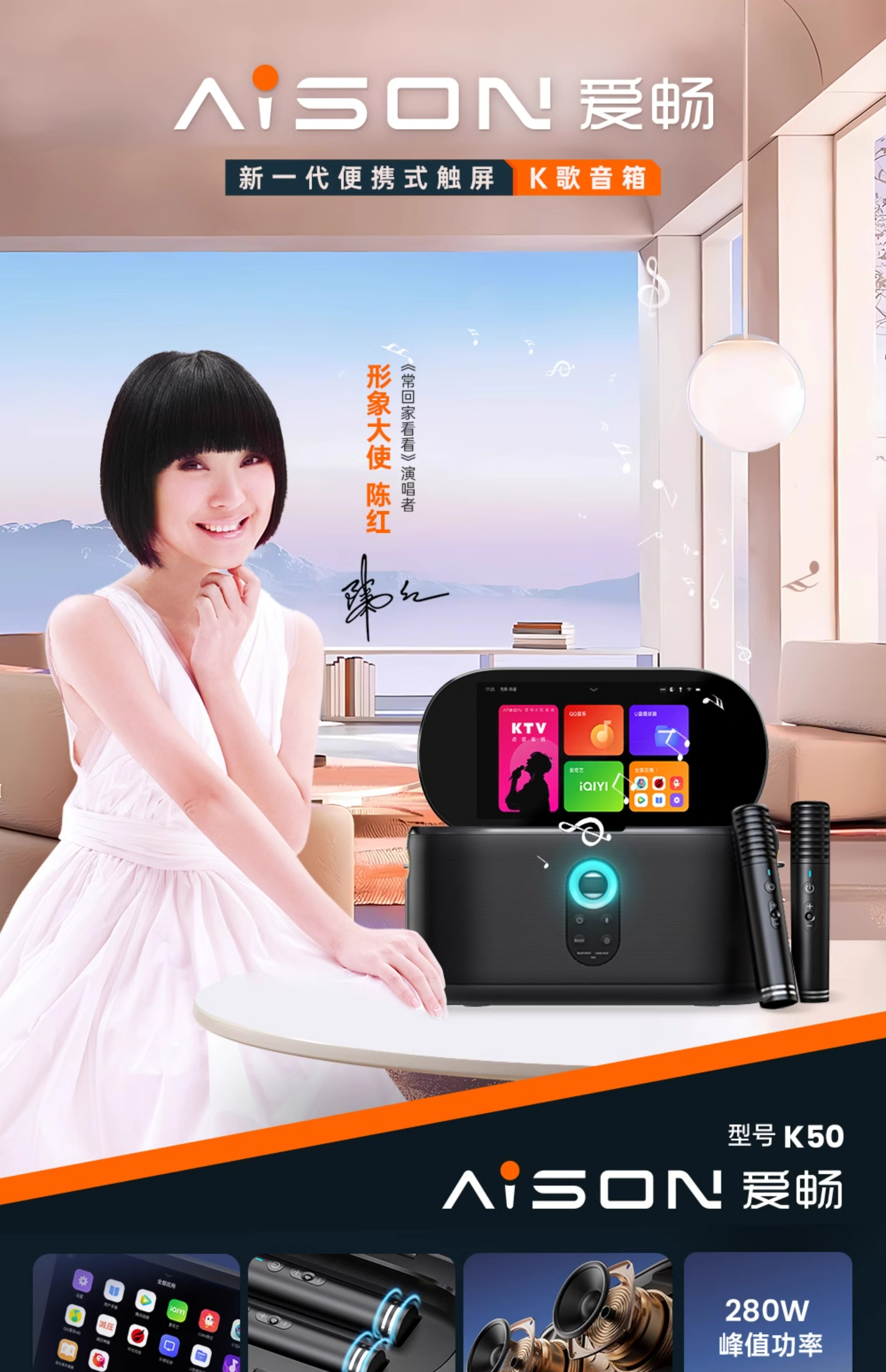 爱畅 K歌音箱 K50 户外便携式点歌机家庭ktv点歌系统k歌音响套装长续航