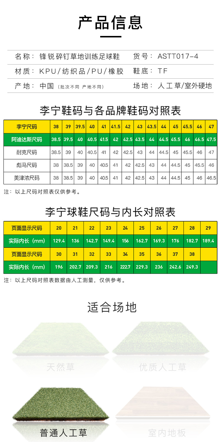 Lining/李宁蜂锐次顶TF碎钉成人足球鞋男ASTT017-4
