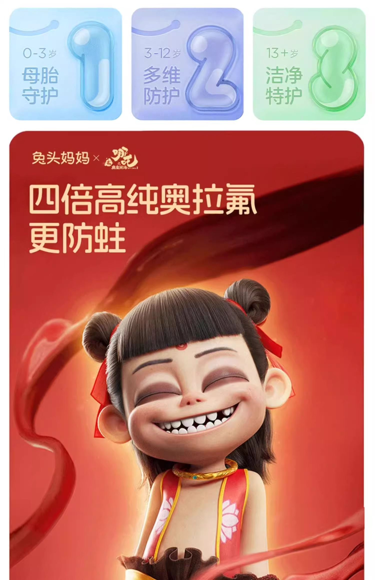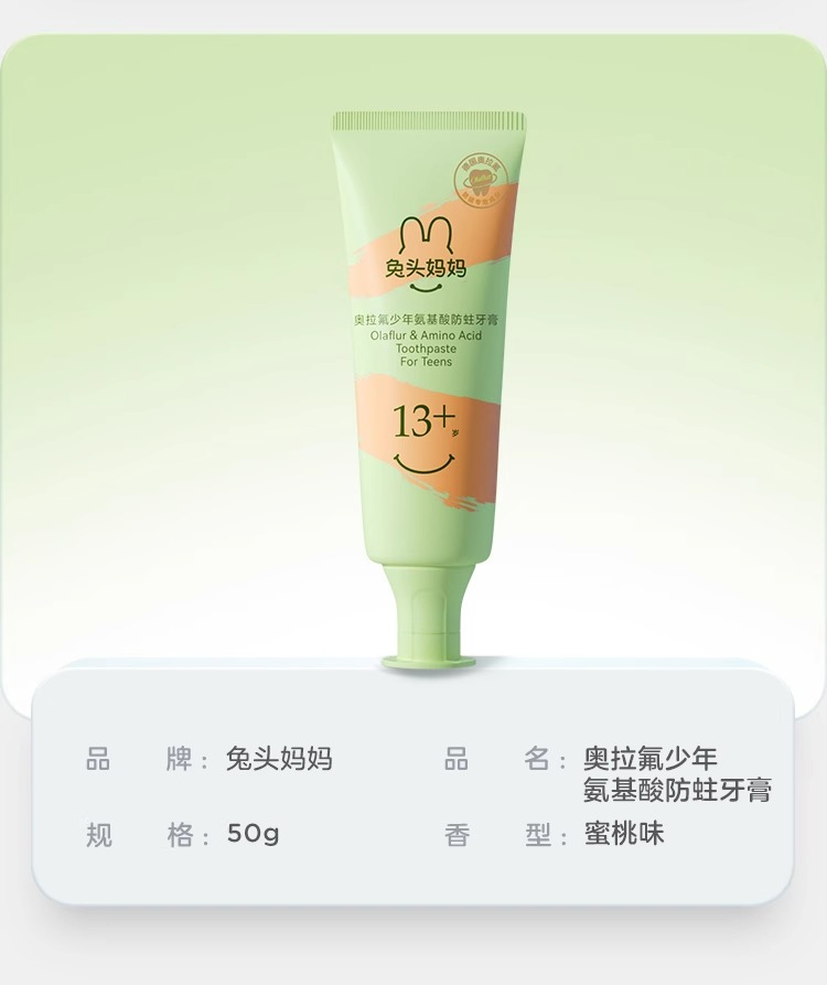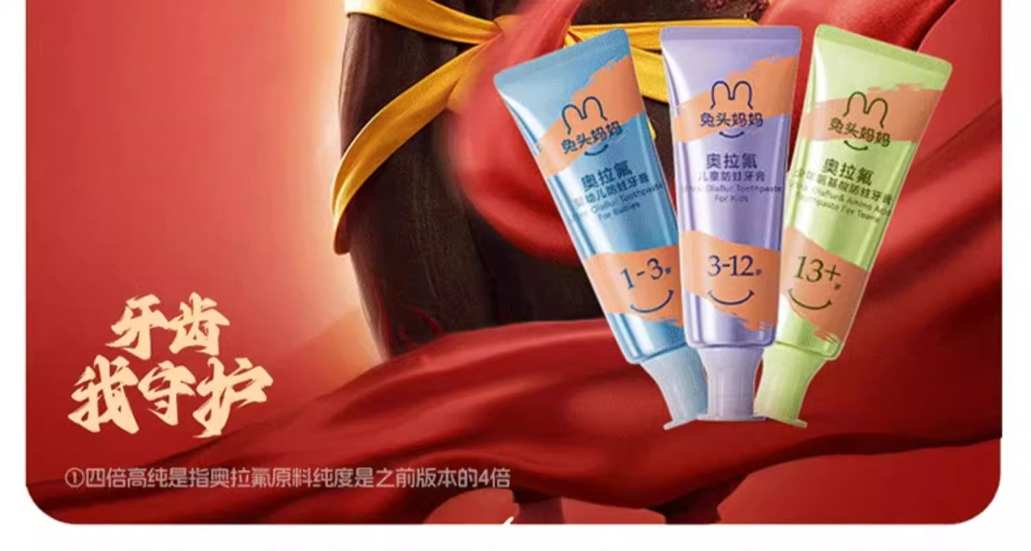 兔头妈妈 x 哪吒 高纯奥拉氟3-12岁(蜜桃味)牙膏50G