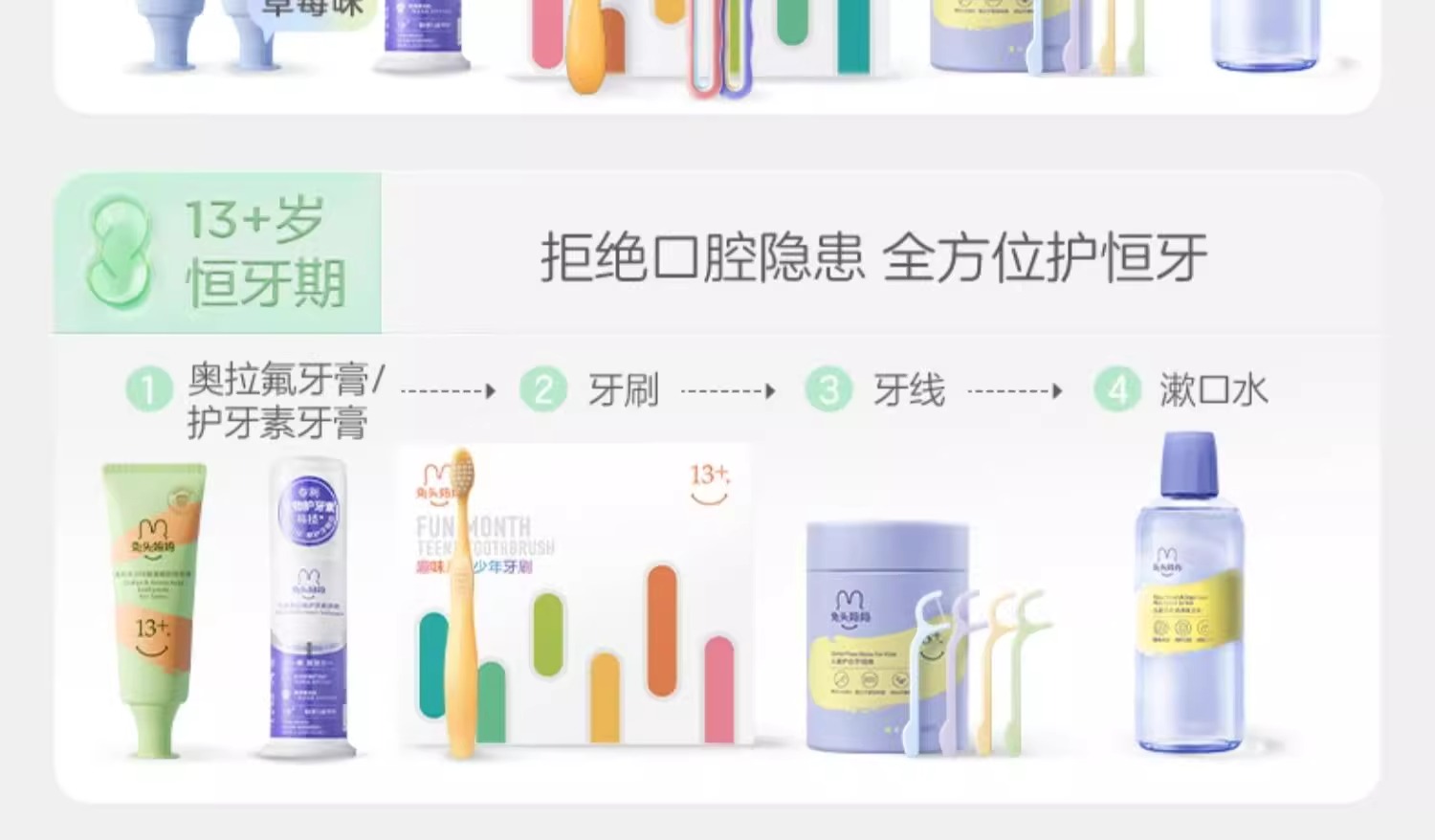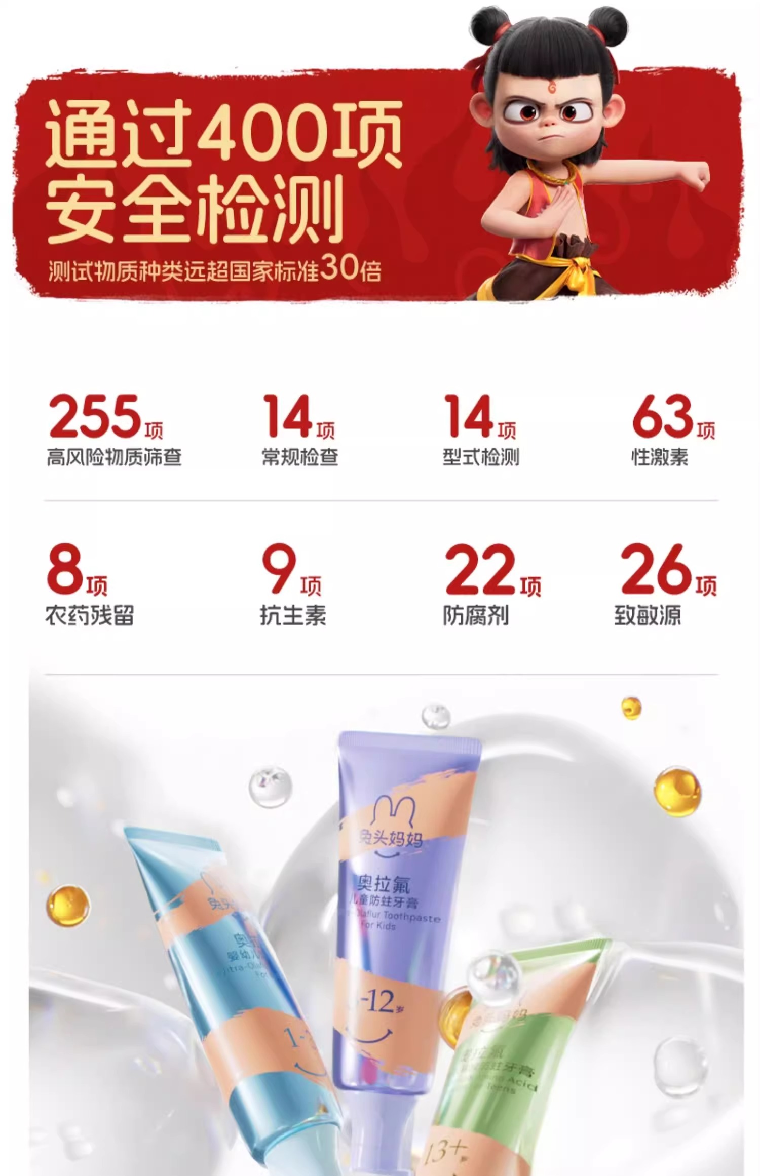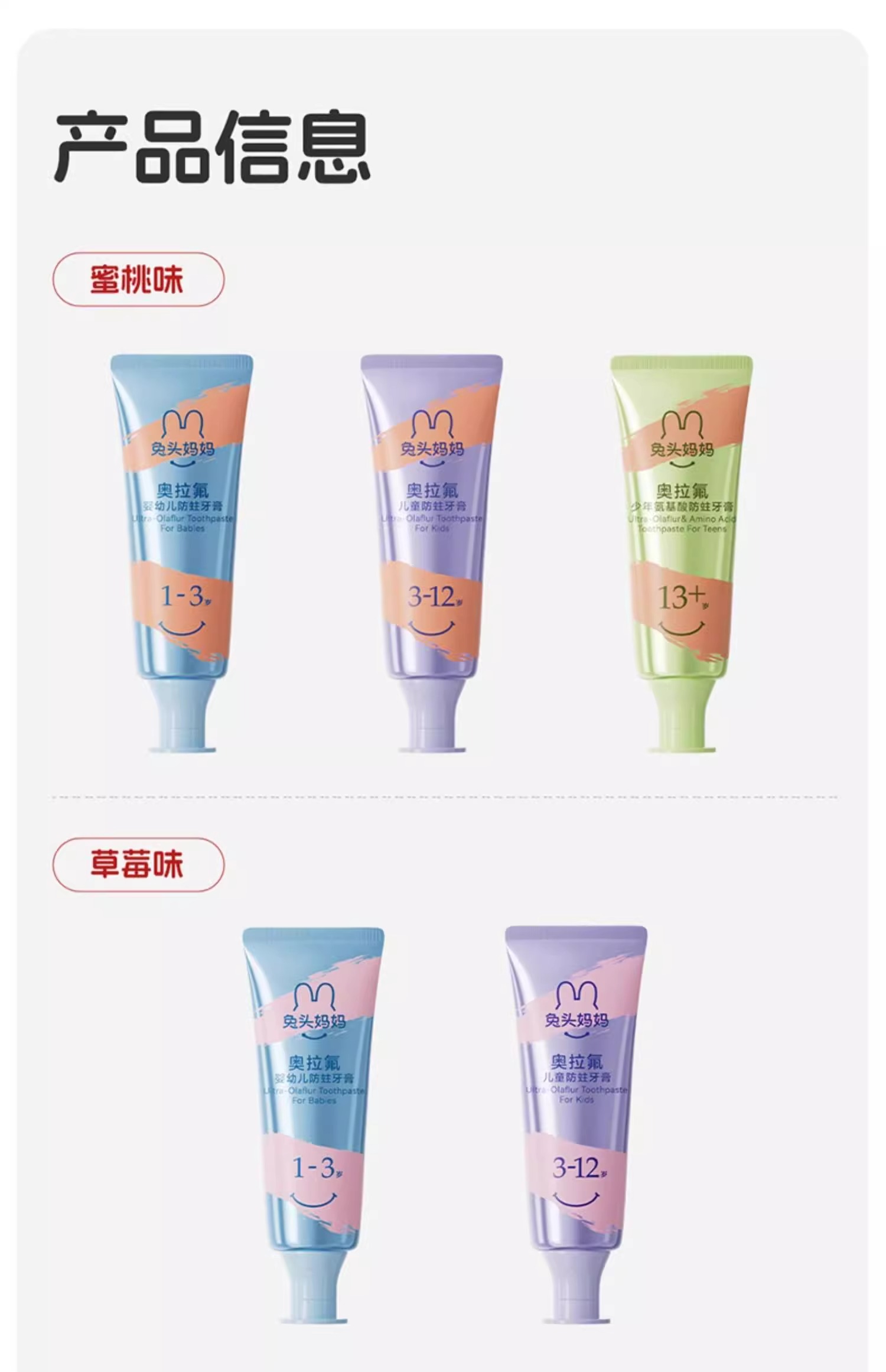兔头妈妈 x 哪吒 高纯奥拉氟3-12岁(蜜桃味)牙膏50G