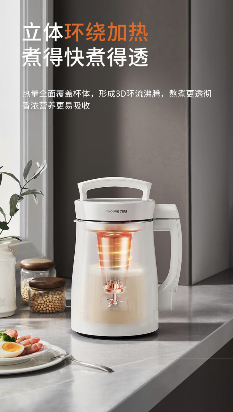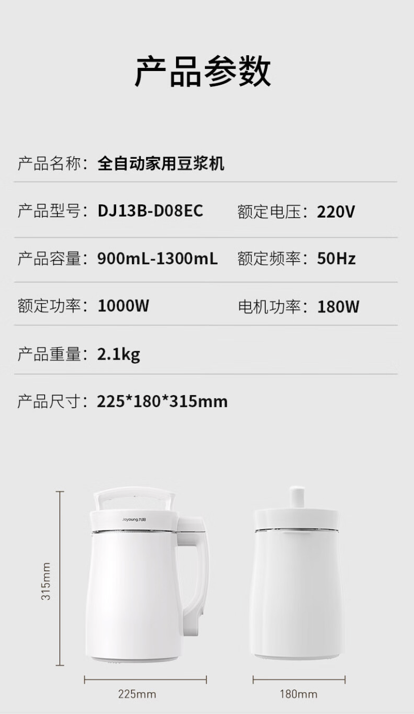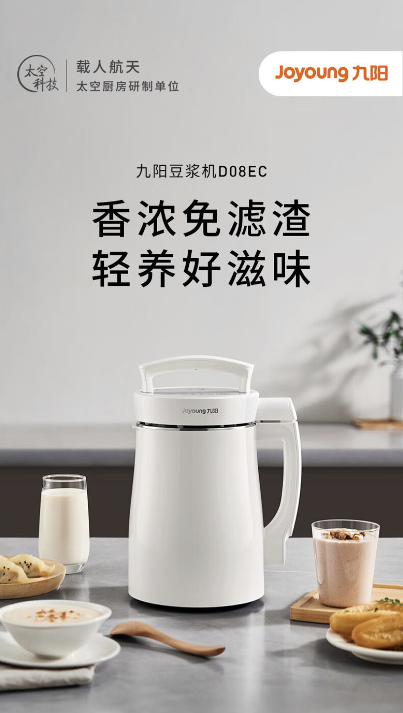 九阳(Joyoung)豆浆机1.3L破壁免滤轻音降噪304不锈钢3-4人用家用多功能全自动榨汁机料理机D08EC