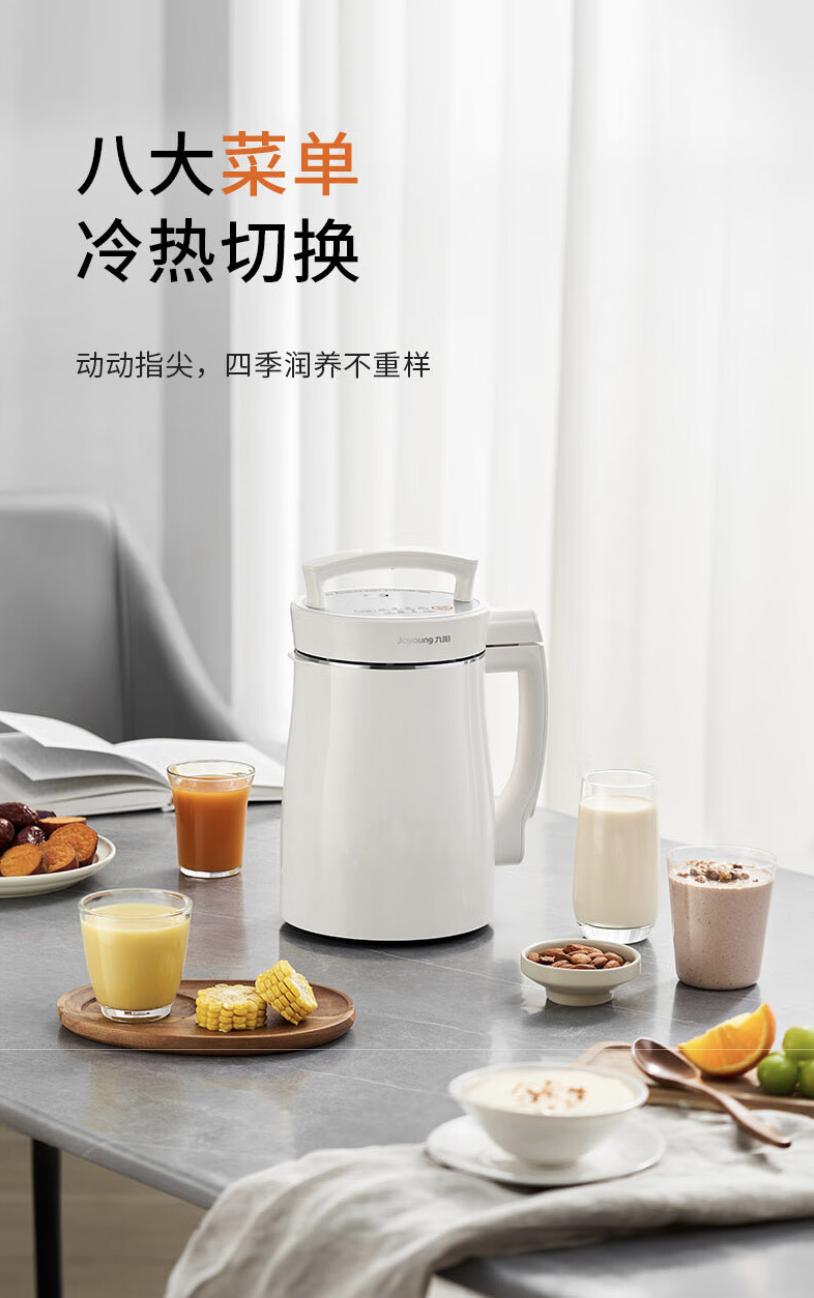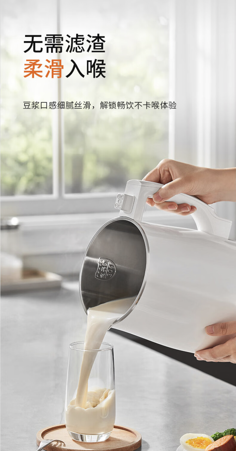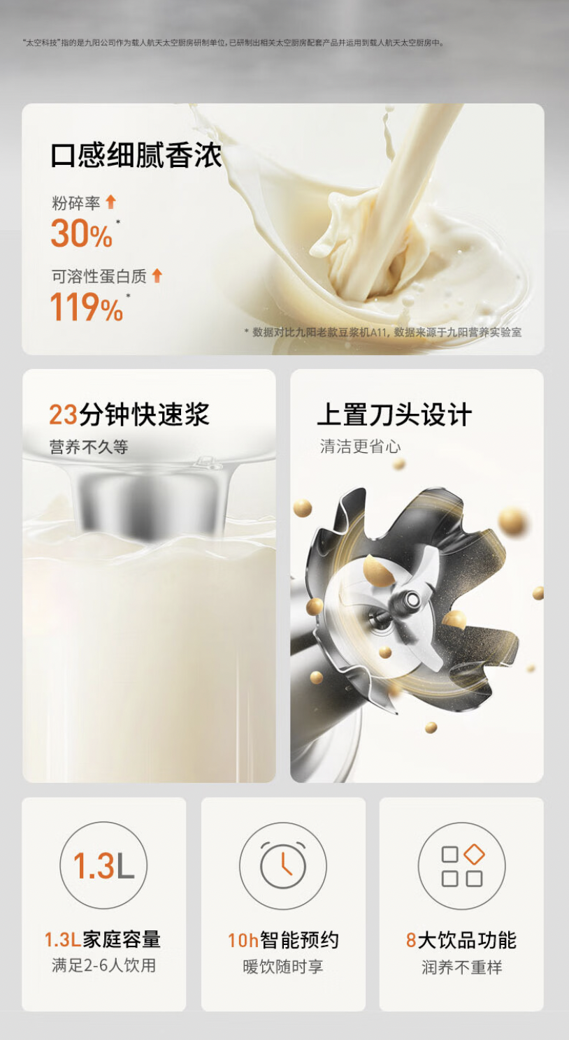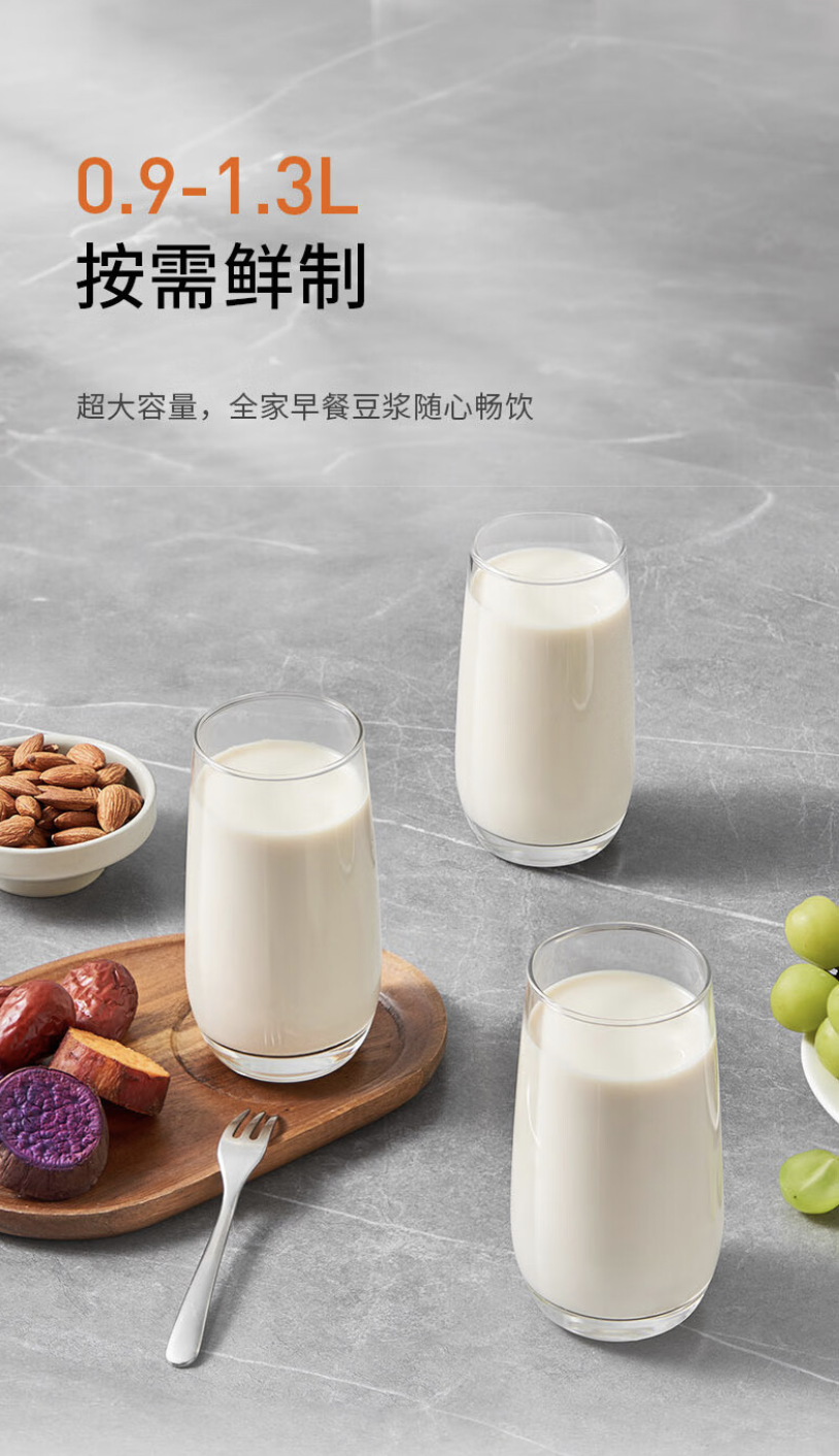 九阳(Joyoung)豆浆机1.3L破壁免滤轻音降噪304不锈钢3-4人用家用多功能全自动榨汁机料理机D08EC