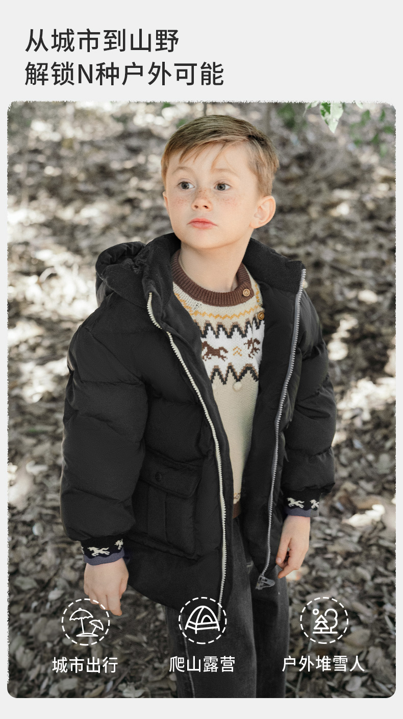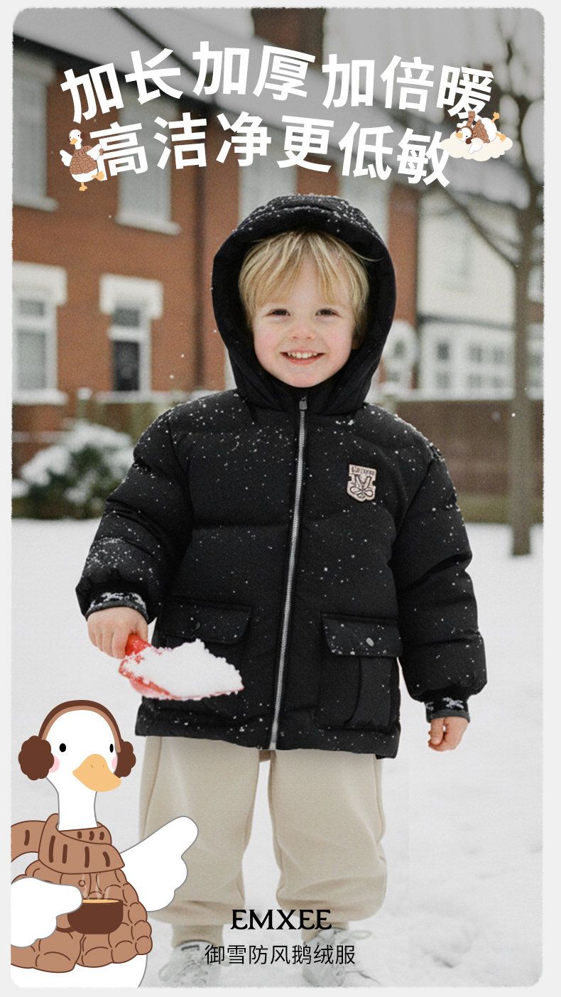 【宝宝服饰】嫚熙童装儿童羽绒服保暖加绒加厚95鹅绒服男女童外出中长款外套冬