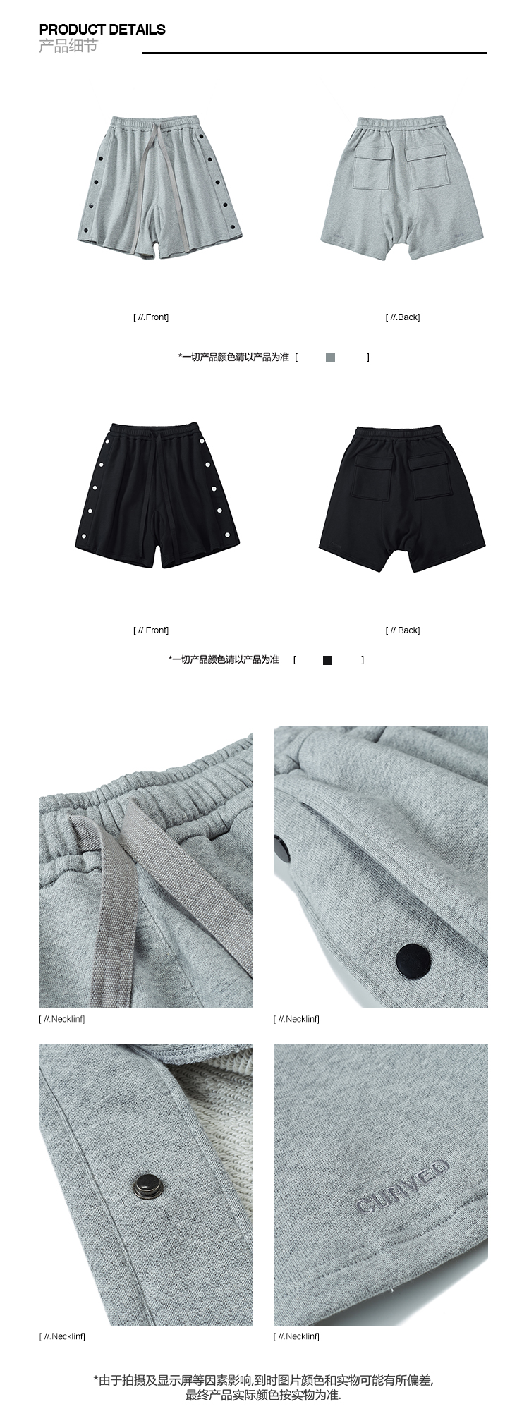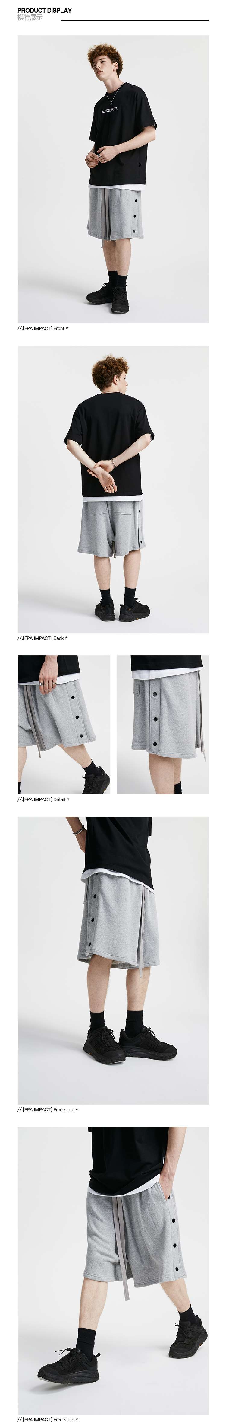 FPA(VENGETICE)灰色排扣短裤男夏季国潮牌潮流百搭宽松休闲五分裤