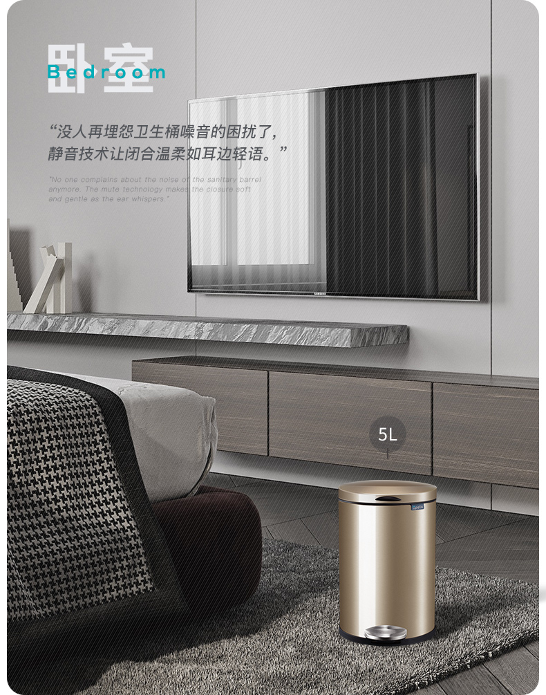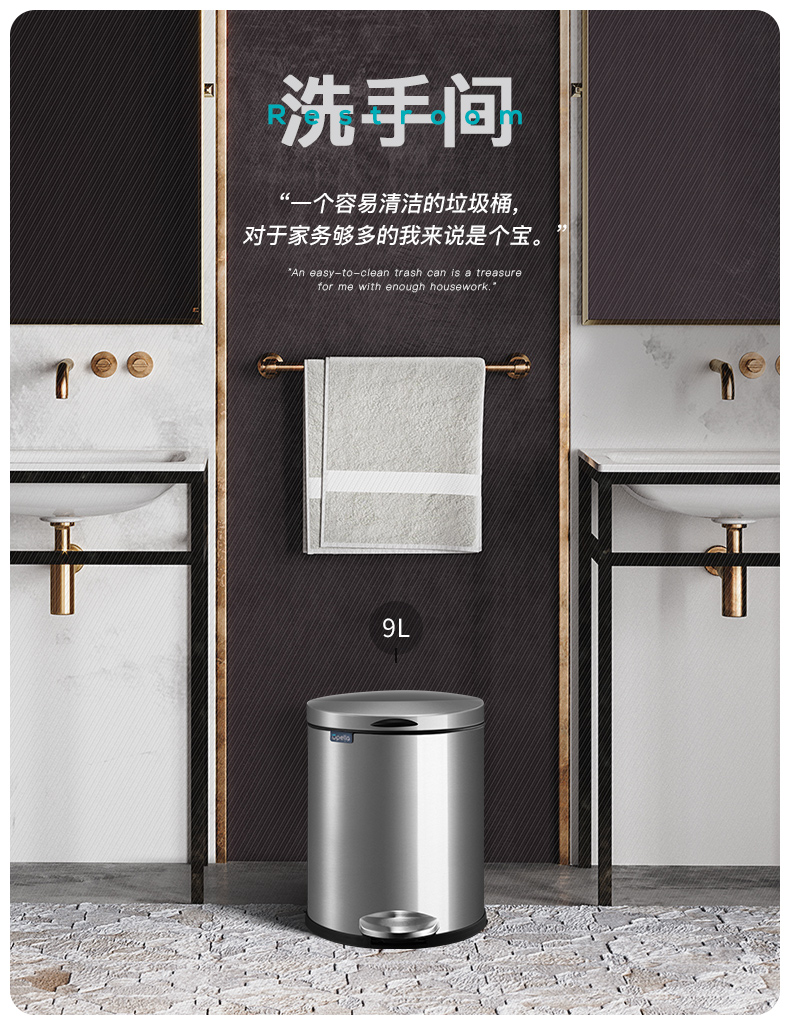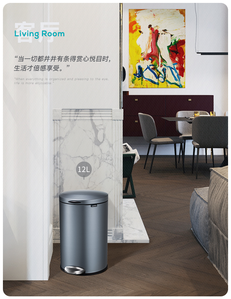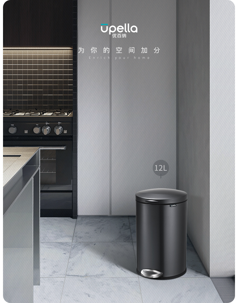 优百纳欧式不锈钢脚踏垃圾桶12L家用带盖静音轻奢客厅厨房卫生间卧室