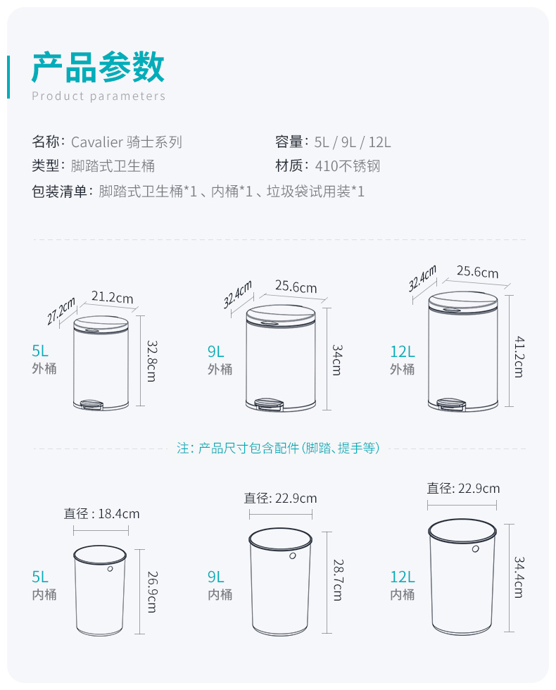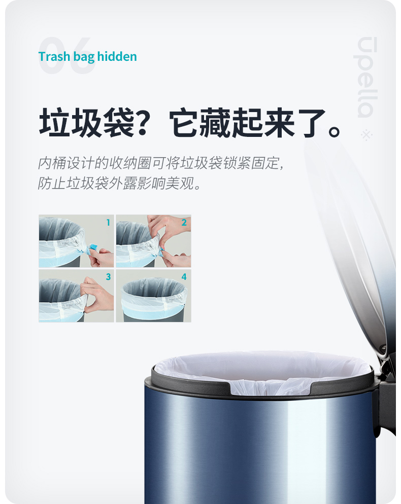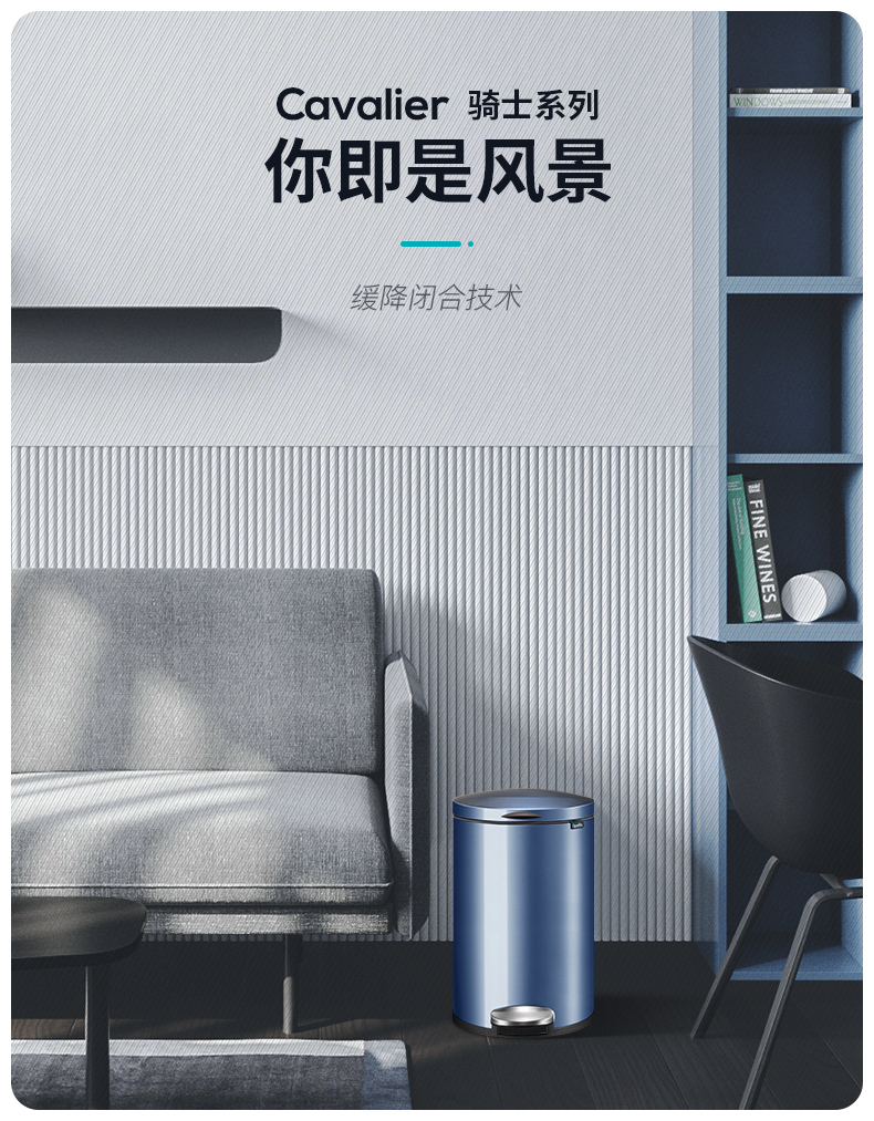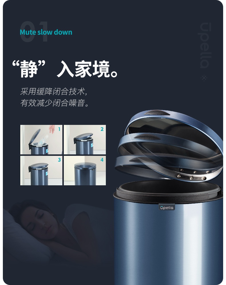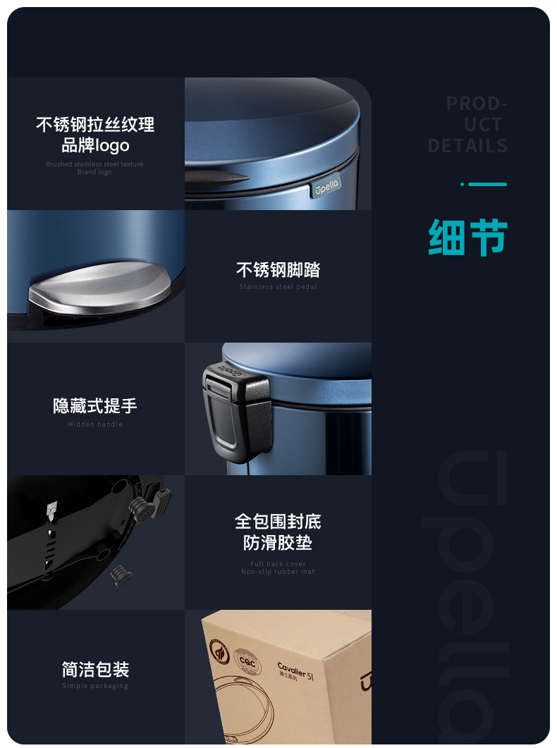 优百纳欧式不锈钢脚踏垃圾桶12L家用带盖静音轻奢客厅厨房卫生间卧室