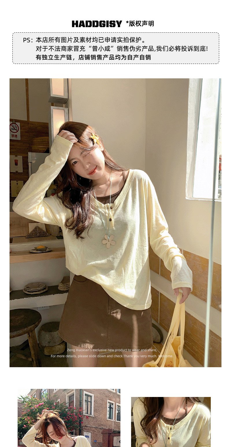 <曾小咸推荐>韩系长袖t恤罩衫背心两件套