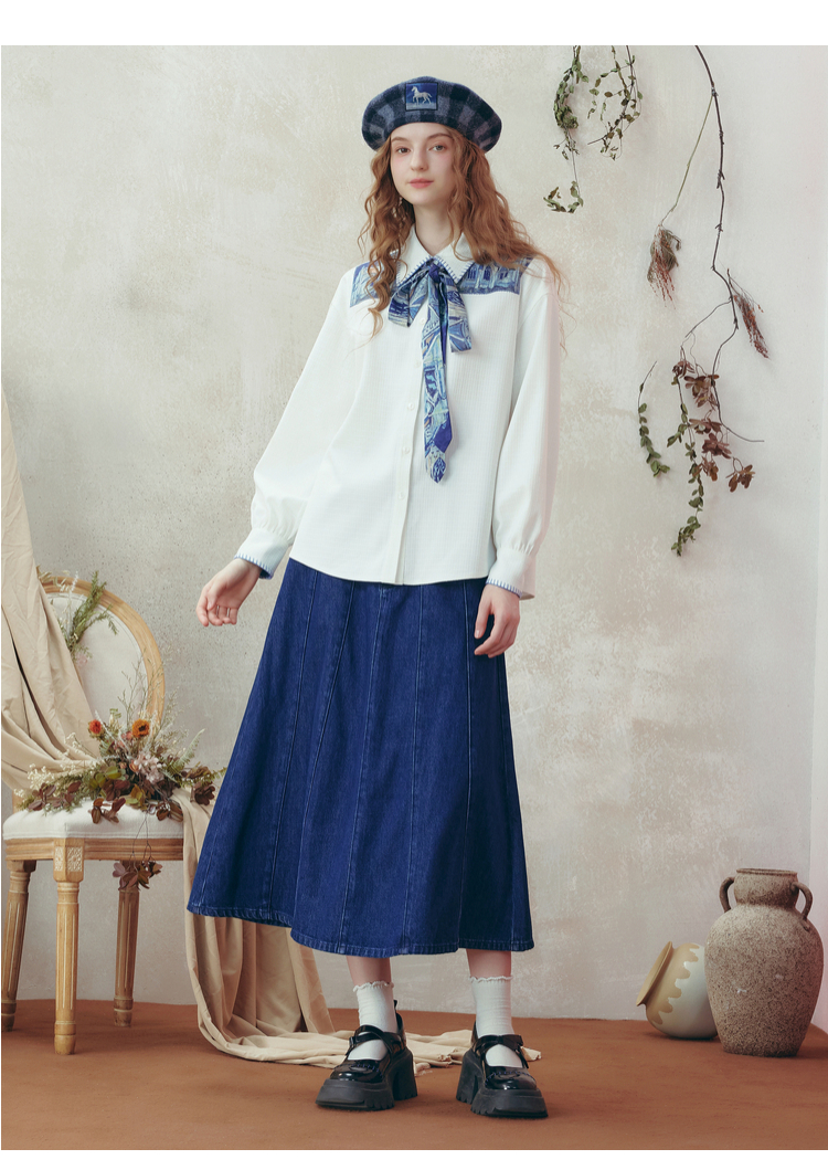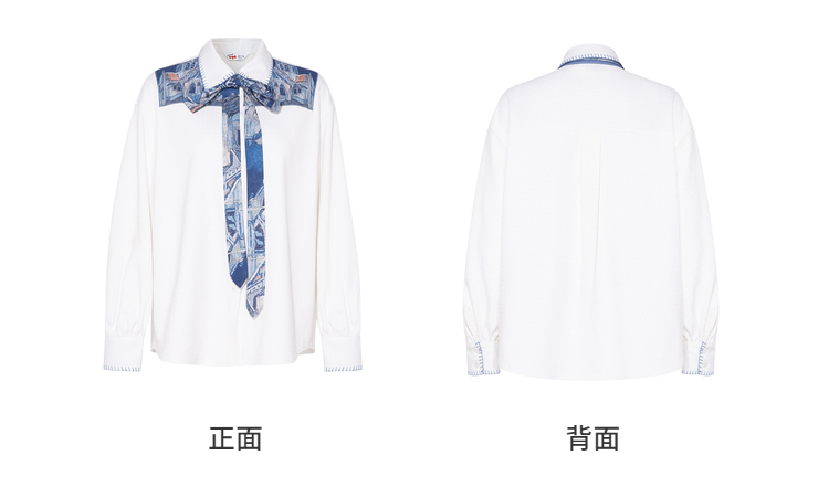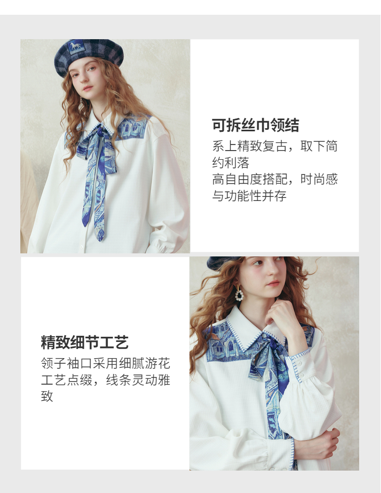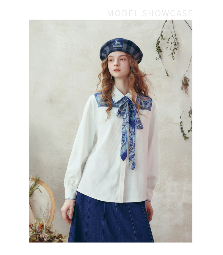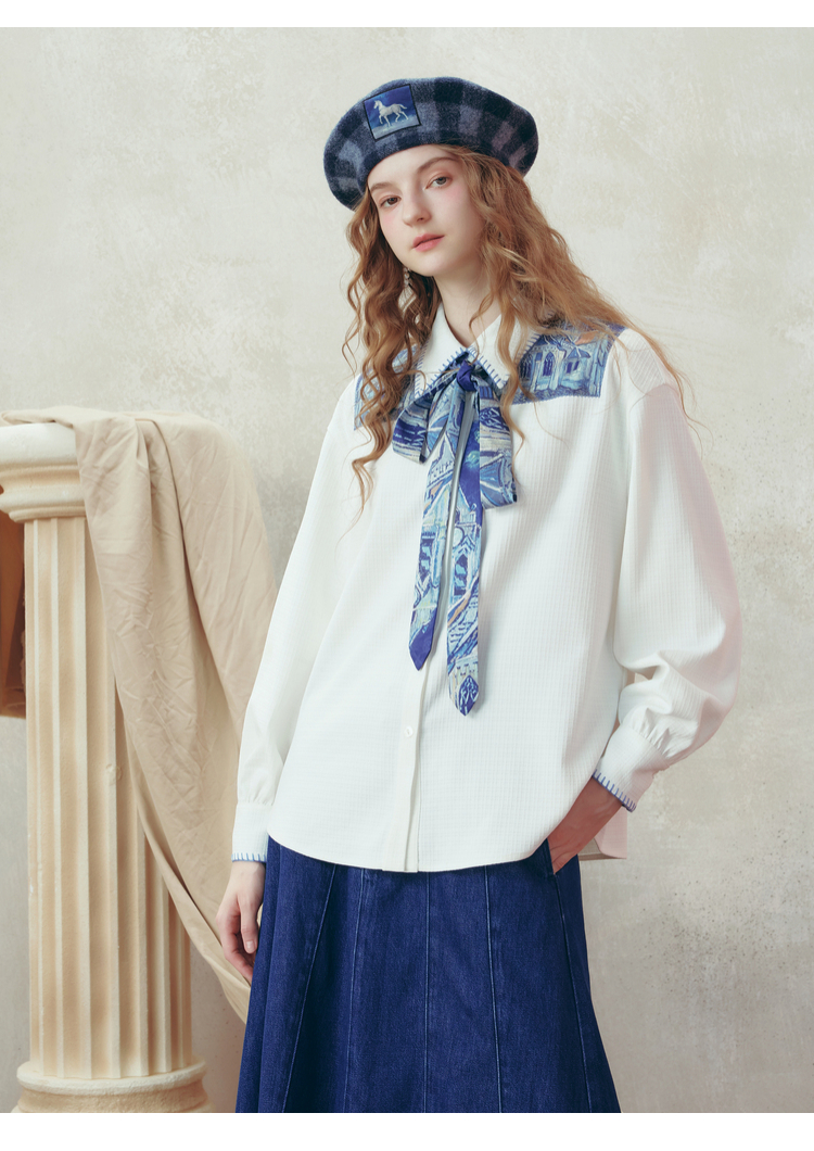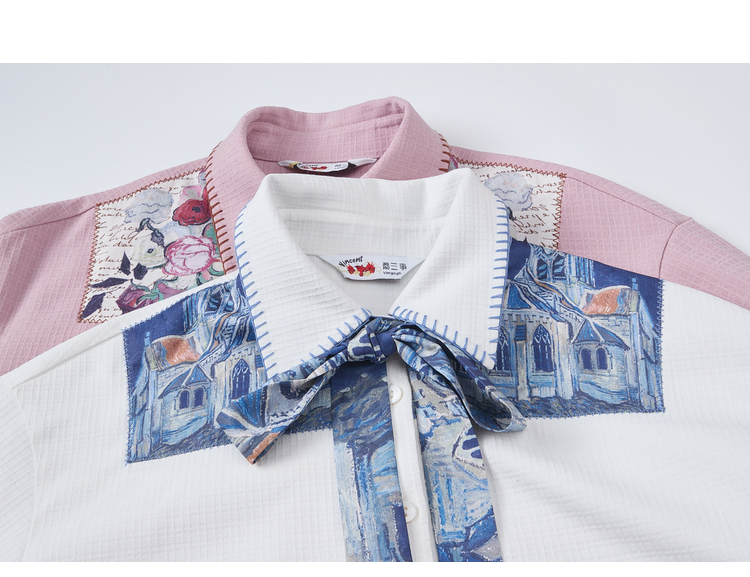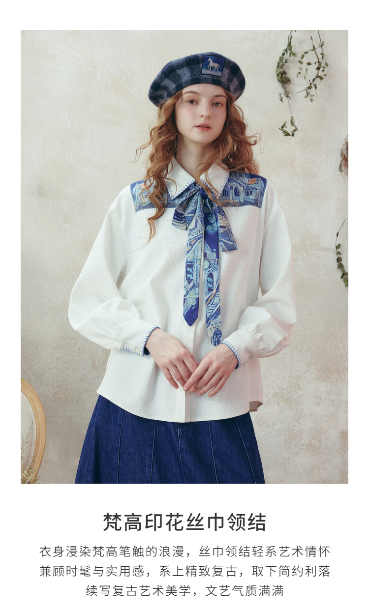 两三事梵高文艺 书卷颂声 2025冬季新款文艺风可拆印花领带衬衫女