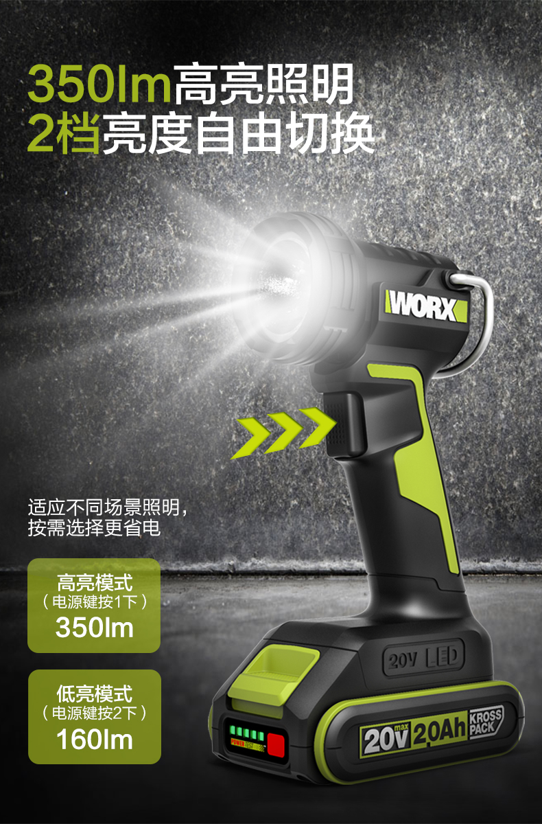威克士多功能锂电灯WU027.9户外工地照明无线便携强光充电电灯