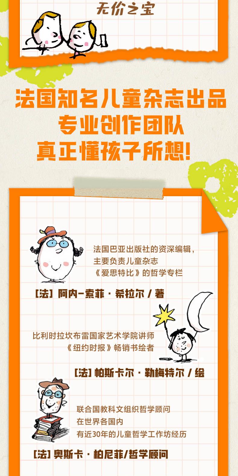 阿内-索菲•希拉尔 (Anne-Sophie Chilard )是法国巴亚出版社的资深编辑,主要负责儿童杂志《爱思特比》(Astrapi)的哲学专栏,该专栏邀请读者参与哲学问题的讨论,并定期在小学课堂组织哲学辩论。 一位才华横溢的插画师,为《时代》《纽约客》《纽约客书评》等国际品牌杂志创作插图,获得美国《出版人周刊》五星推荐,并被美国插画协会推选为第46届年度画家。他的绘画着重色彩和创意,充满想象力。在本书中,他巧妙地将玩笑、幽默、温情和深度融合在一起,通过不拘一格的表现形式使小读者爱上阅读和思考。已出版作品包括法国必读低幼启智图画书《所有人都要嗯嗯》。