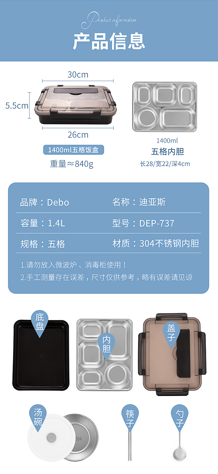 配置:盖子*1、内胆*1、勺子*1、筷子*1、碗*1