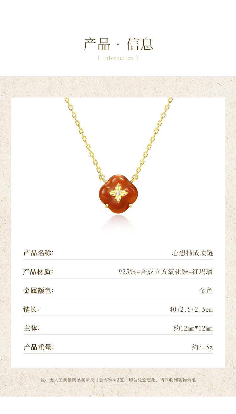 Fanci范琦×宫主 好事发生系列 【心想柿成项链】红玛瑙吊坠生日礼物送妈妈送女友 下单即赠(宫主精美礼盒)+顺丰空运+运费险