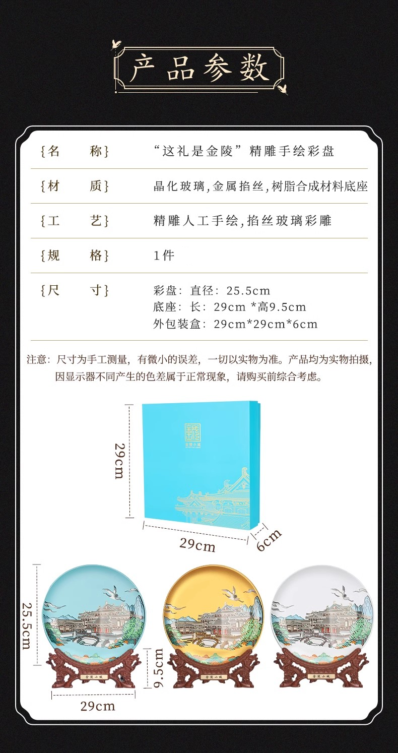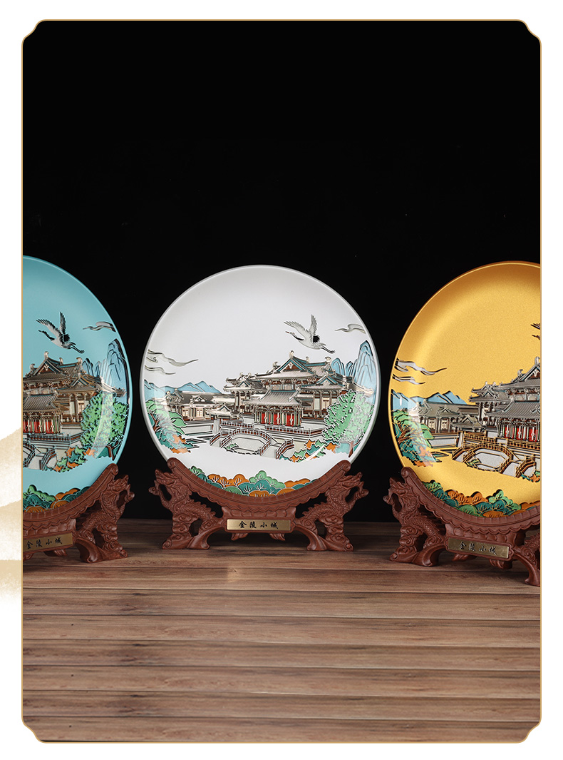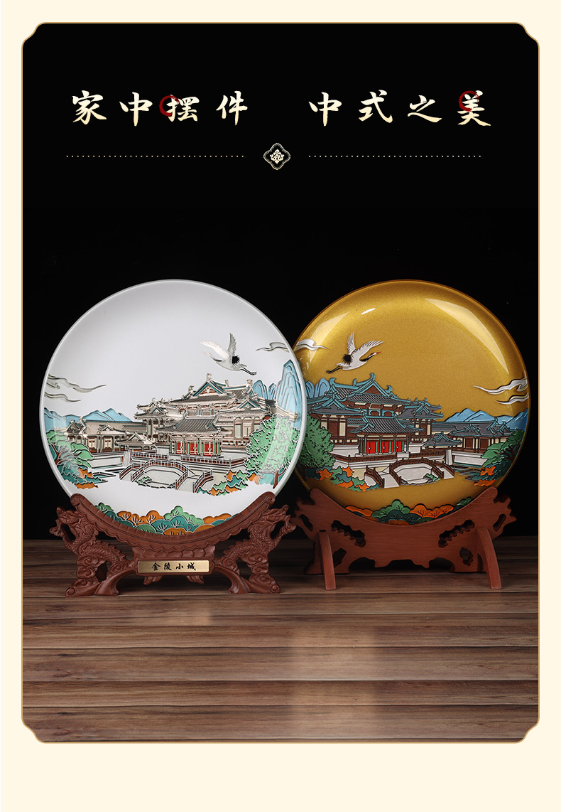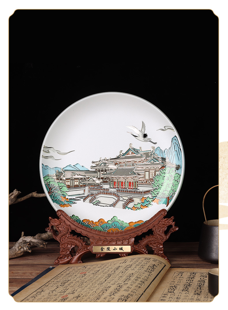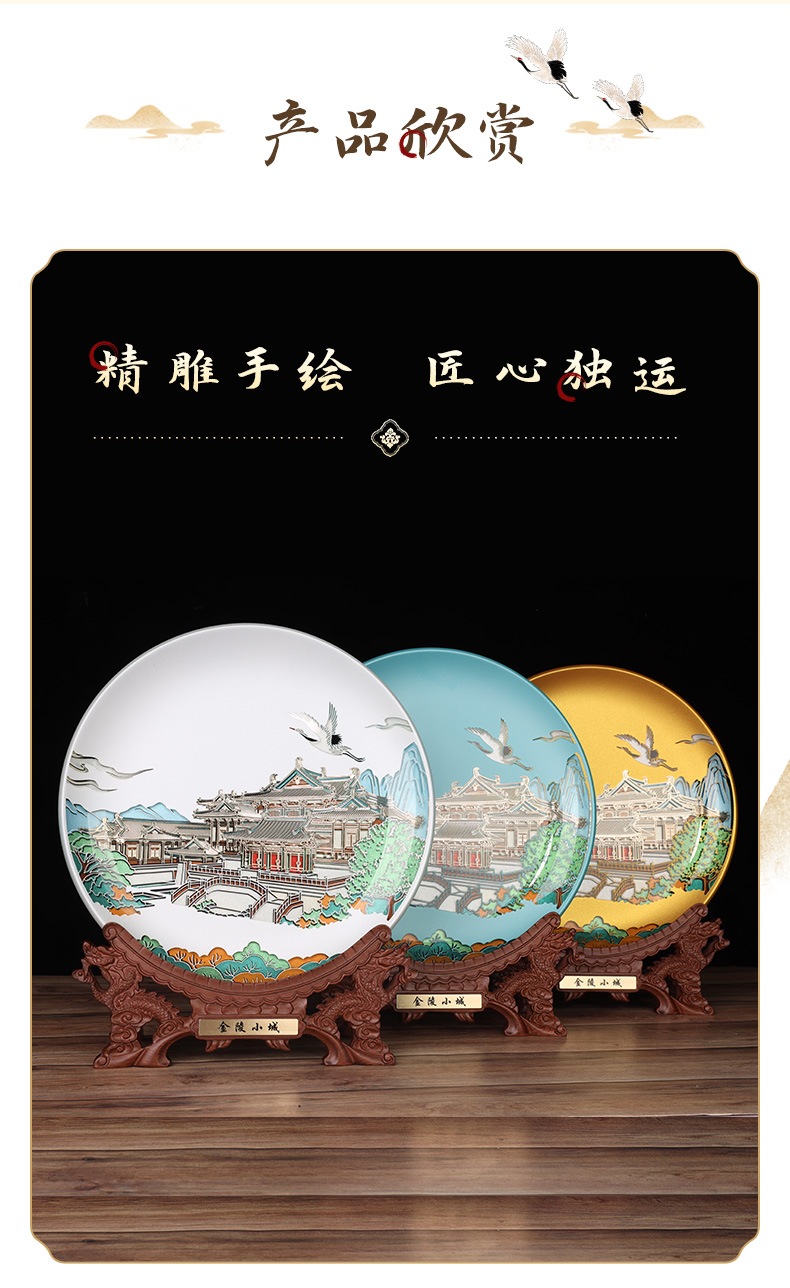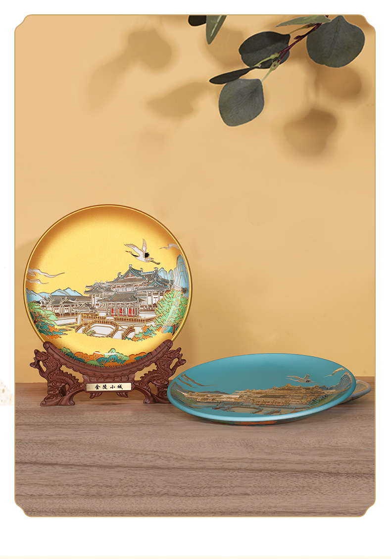 牛首山文创精雕手绘彩盘摆件家居饰品摆设客厅轻奢高档中式礼品物