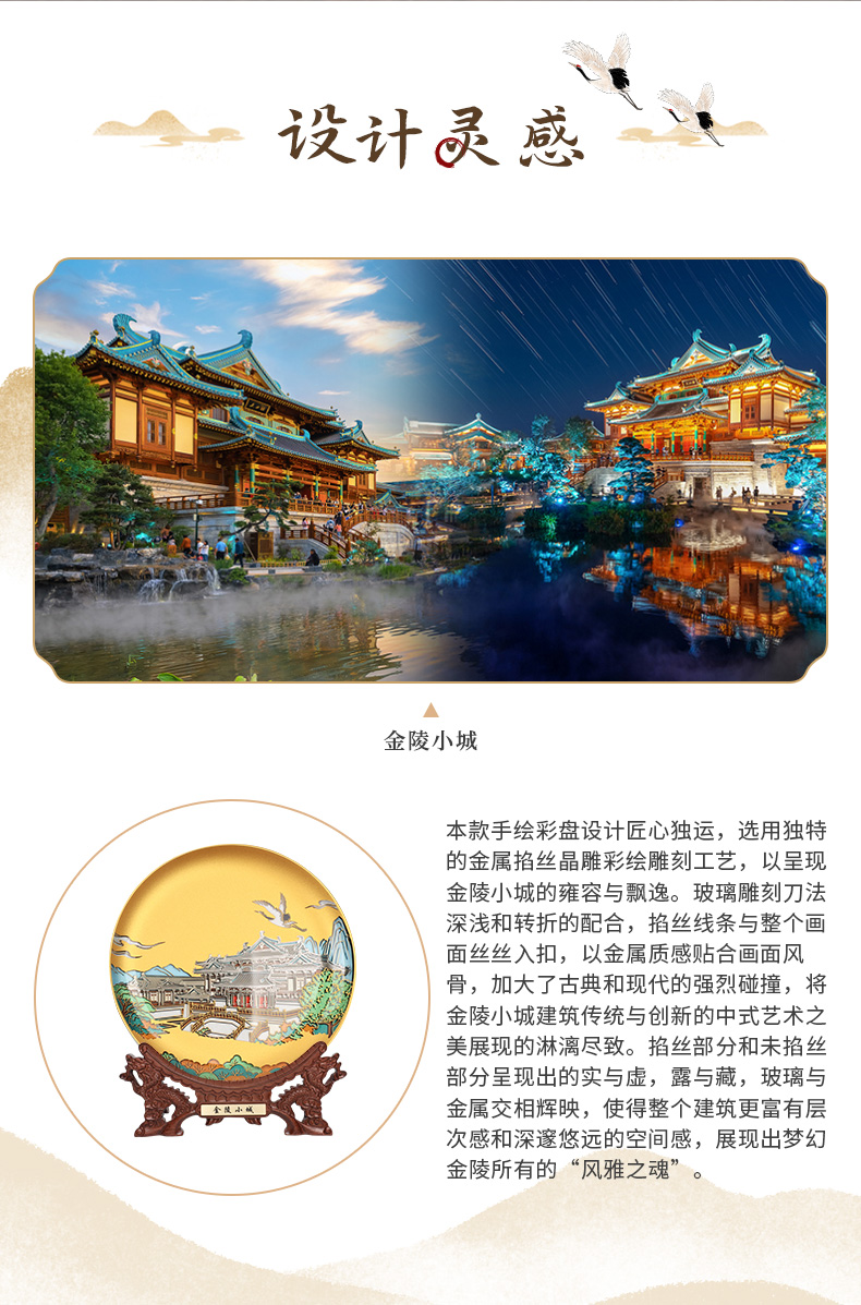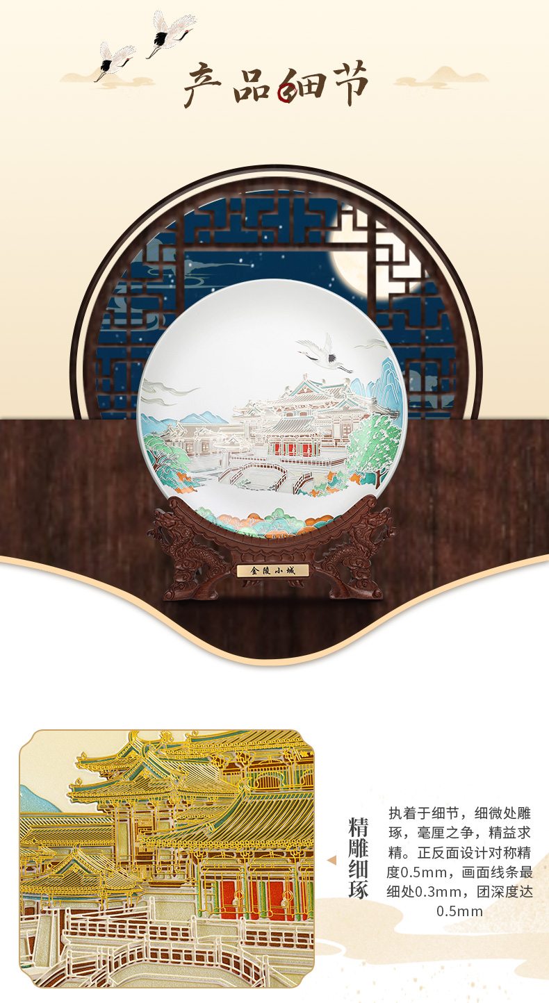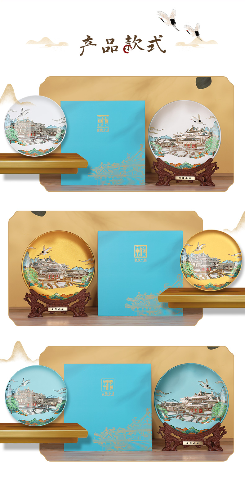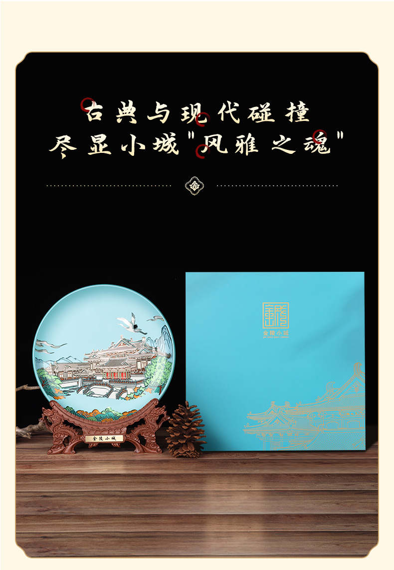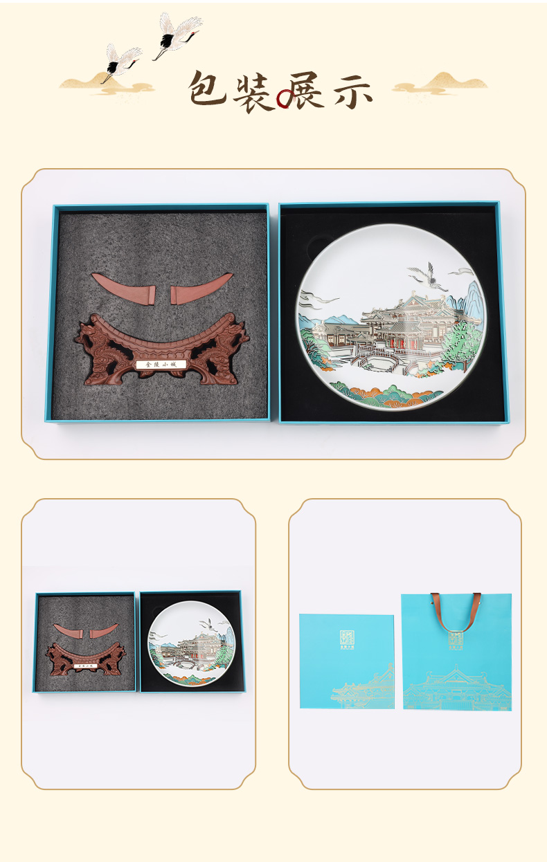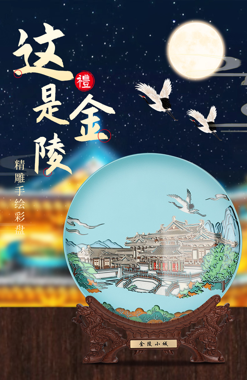 牛首山文创精雕手绘彩盘摆件家居饰品摆设客厅轻奢高档中式礼品物