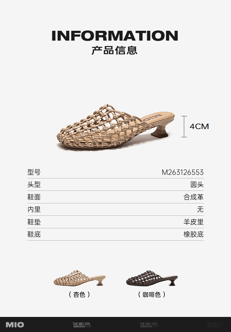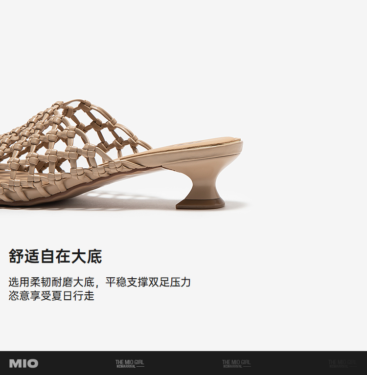 千百度羊皮玛丽珍时装凉鞋女包头后空粗中跟通勤凉鞋A25212306