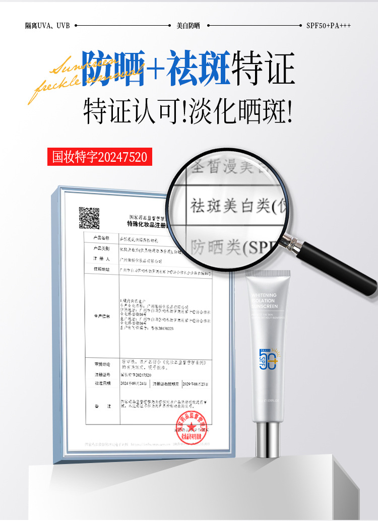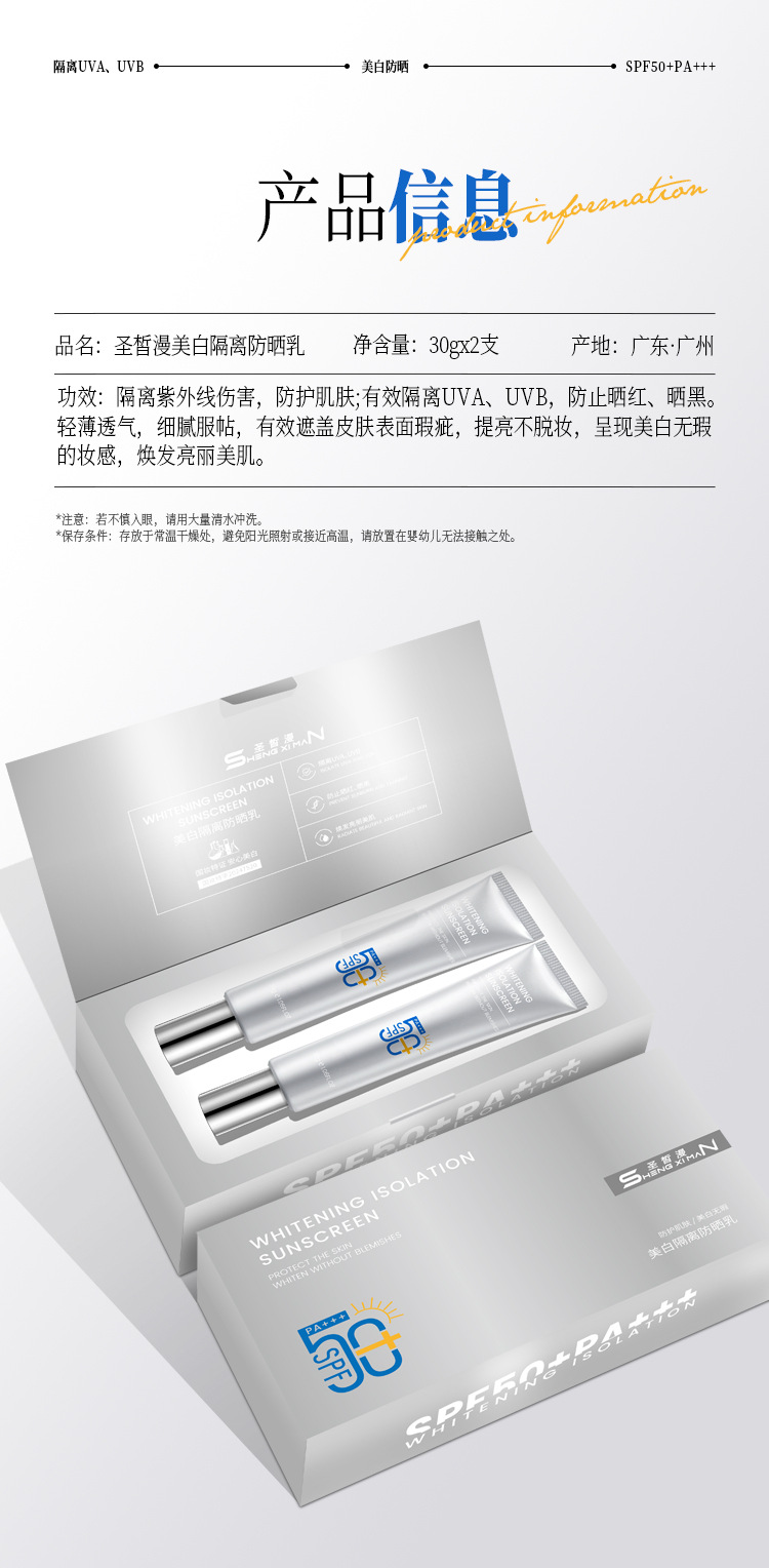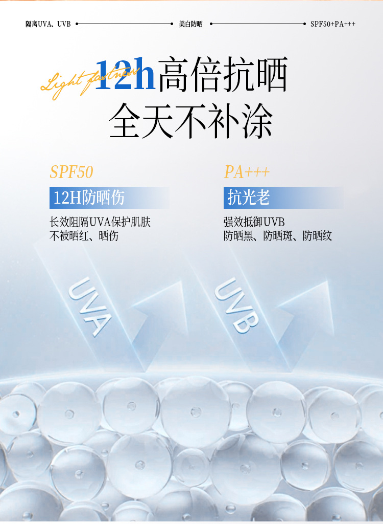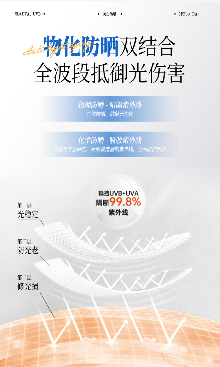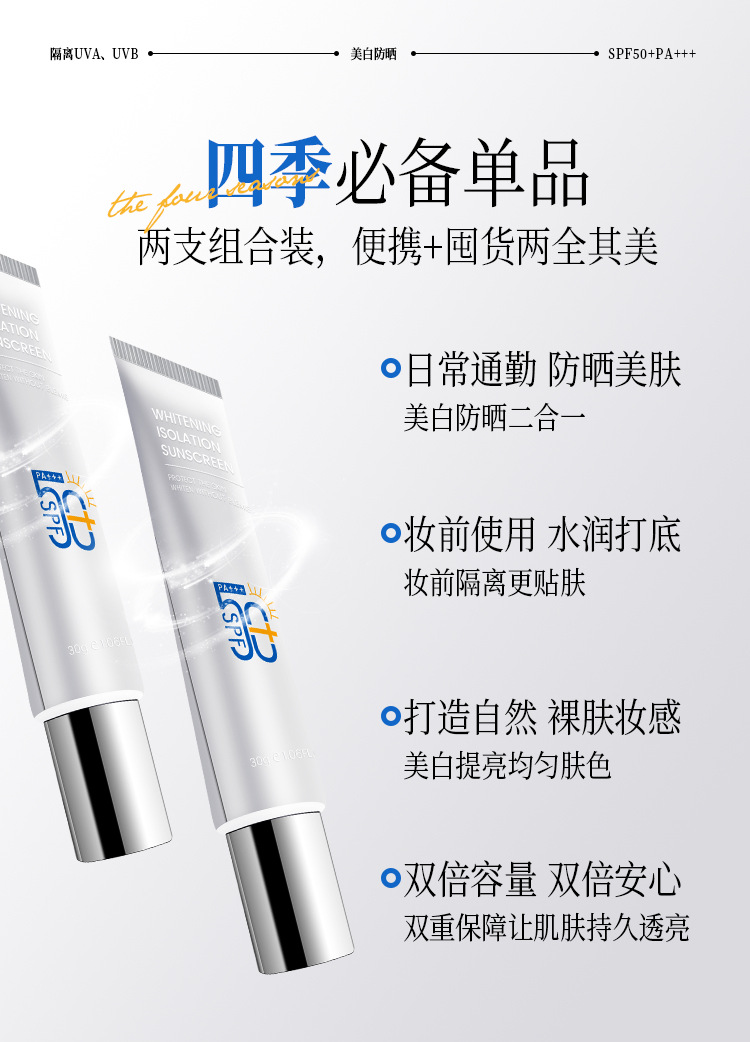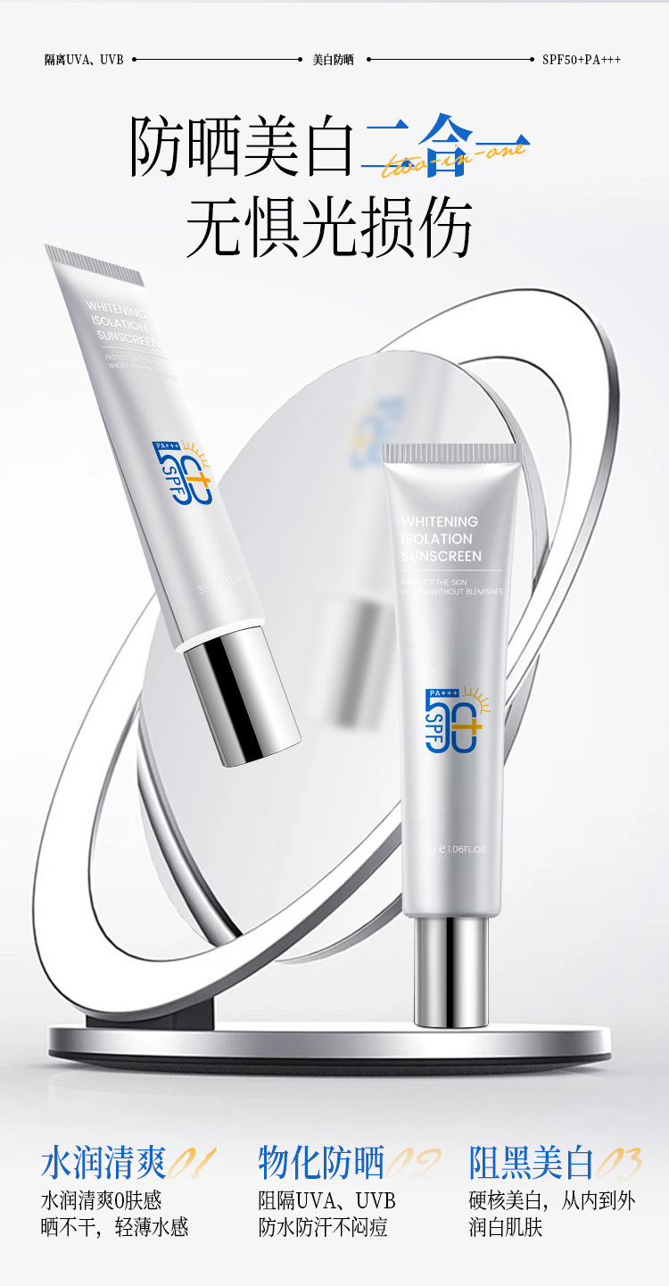 美白隔离防晒霜50+++防紫外线轻薄肤感清爽不油腻高倍防晒乳新款新品