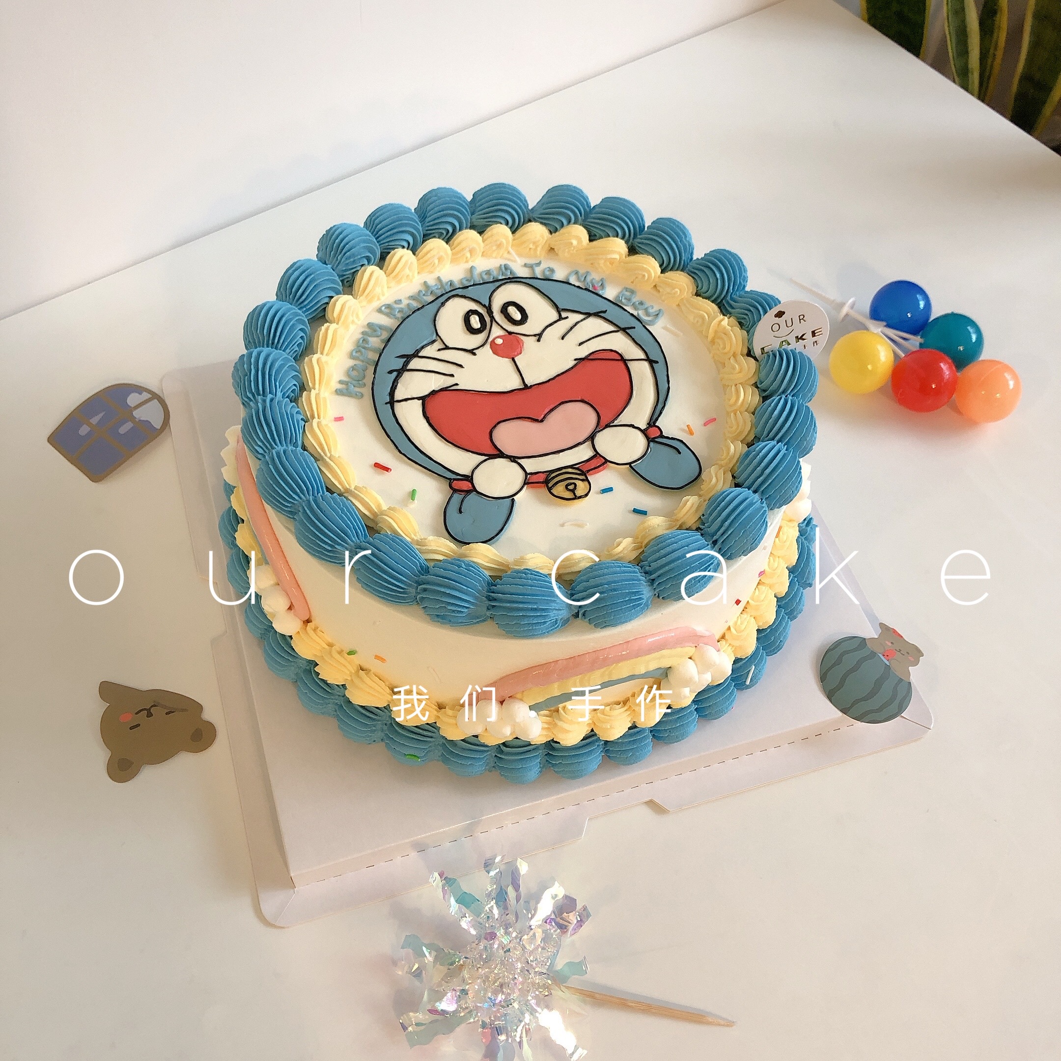 彩虹哆啦A梦/叮当猫/机器猫手绘蛋糕-低糖处理无添加