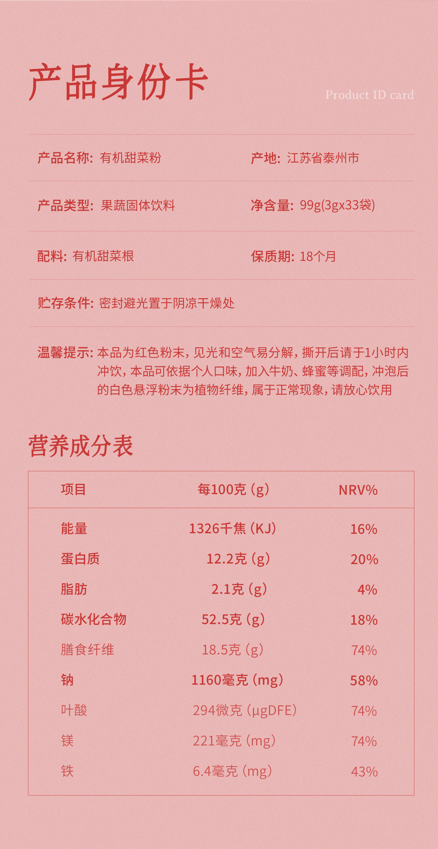 全食物日记 有机甜菜根粉99g(3g*33支)