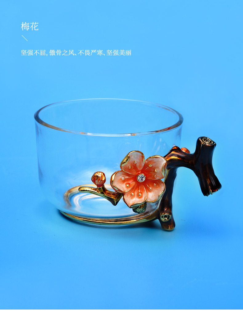 罗比罗丹花之语创意珐琅彩带把玻璃杯礼盒装【不支持补差,非质量问题不退不换】S